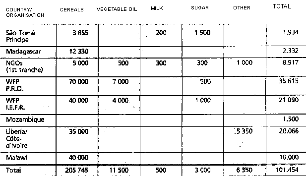 The Commission has recently taken decisions to finance food aid as set out in the chart which follows: