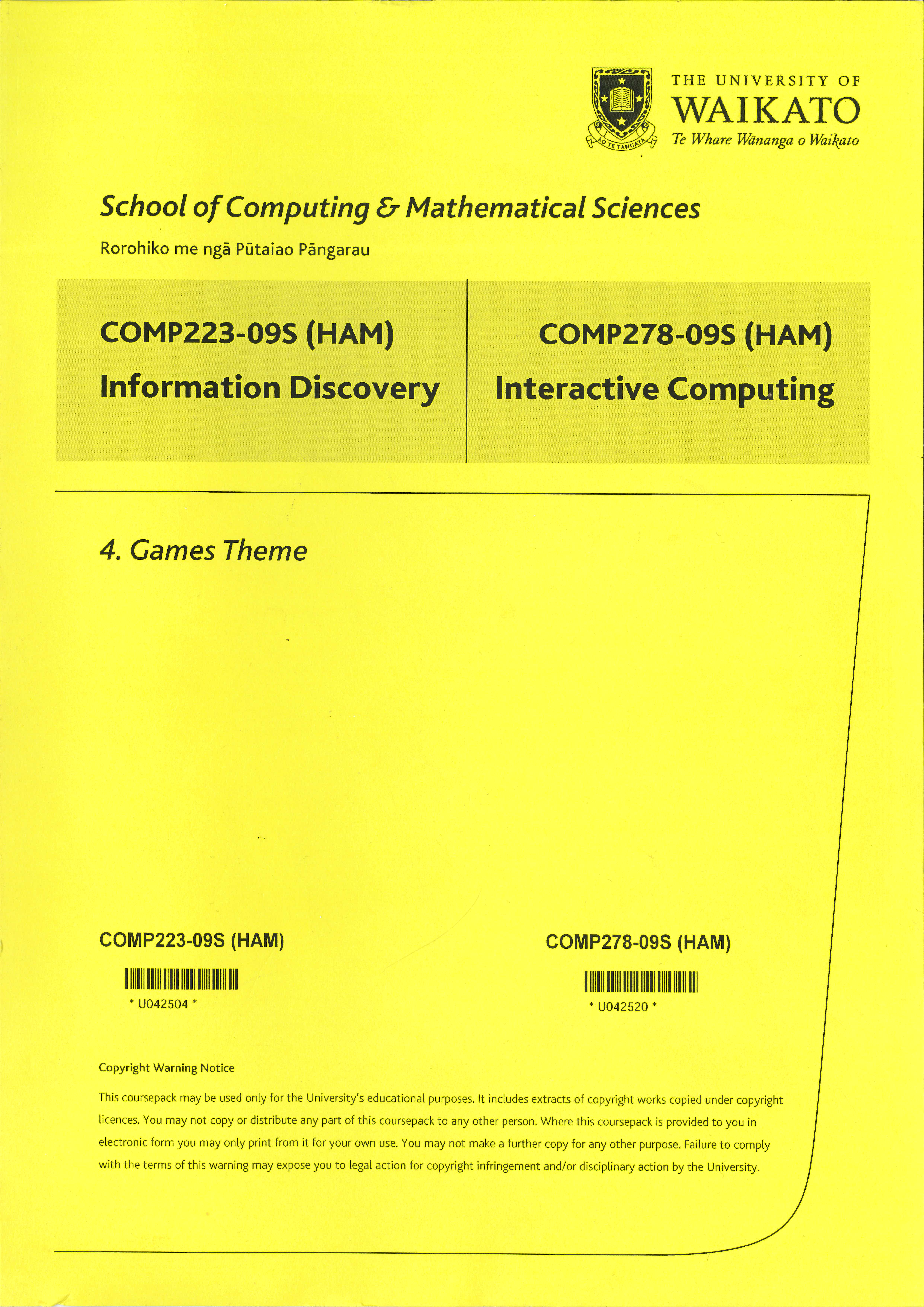 COMP223 COMP278 09S 4 (HAM) |