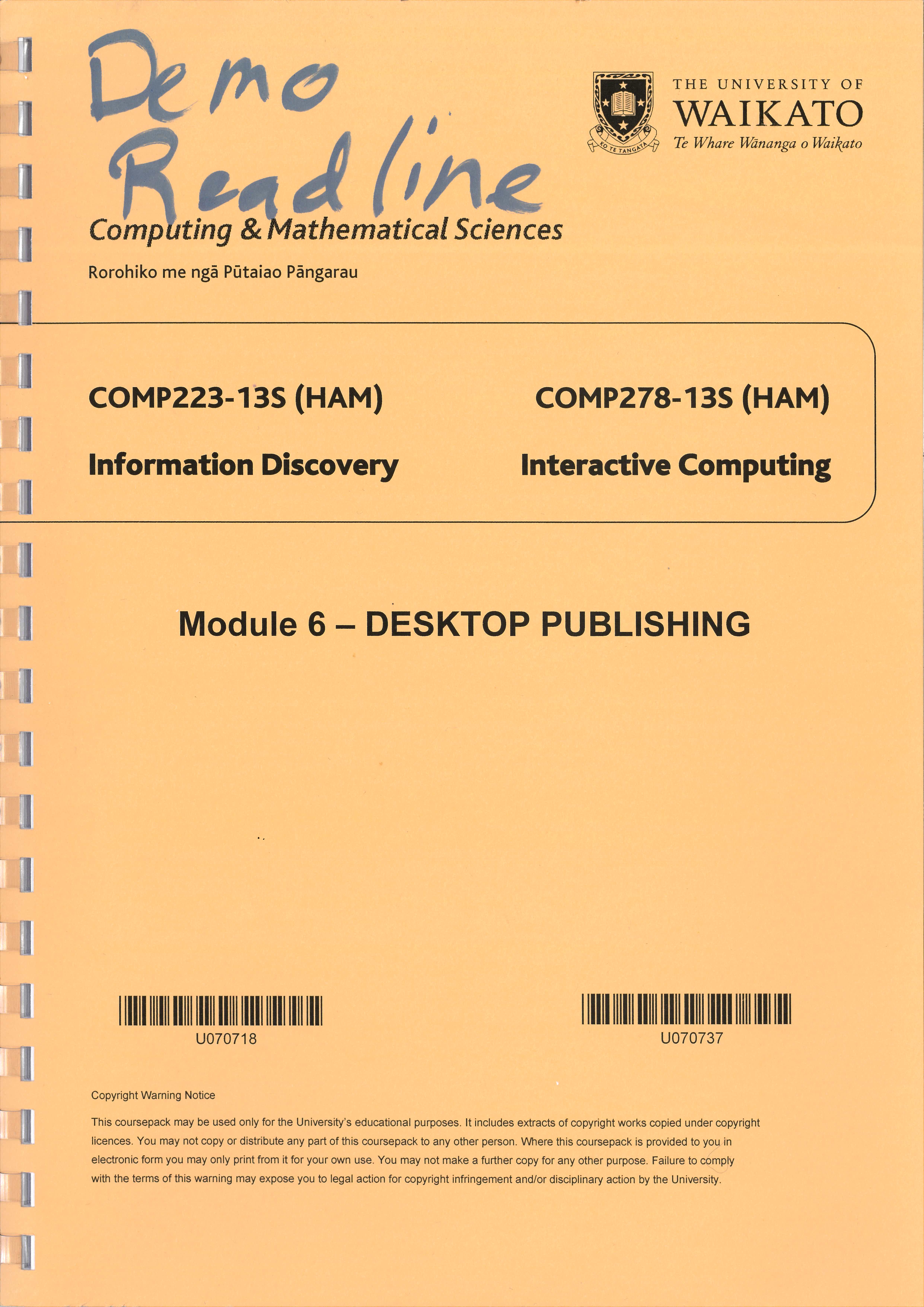 COMP223 COMP278 13S 6 (HAM) |
