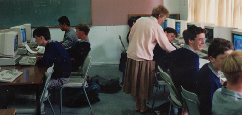 Demonstrators and Computer Science staff inside TB3 lab, 1991