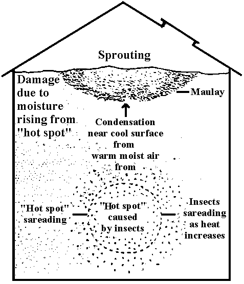 2. Inadequate pre-storage drying with resultant losses due to fungi and insects.
