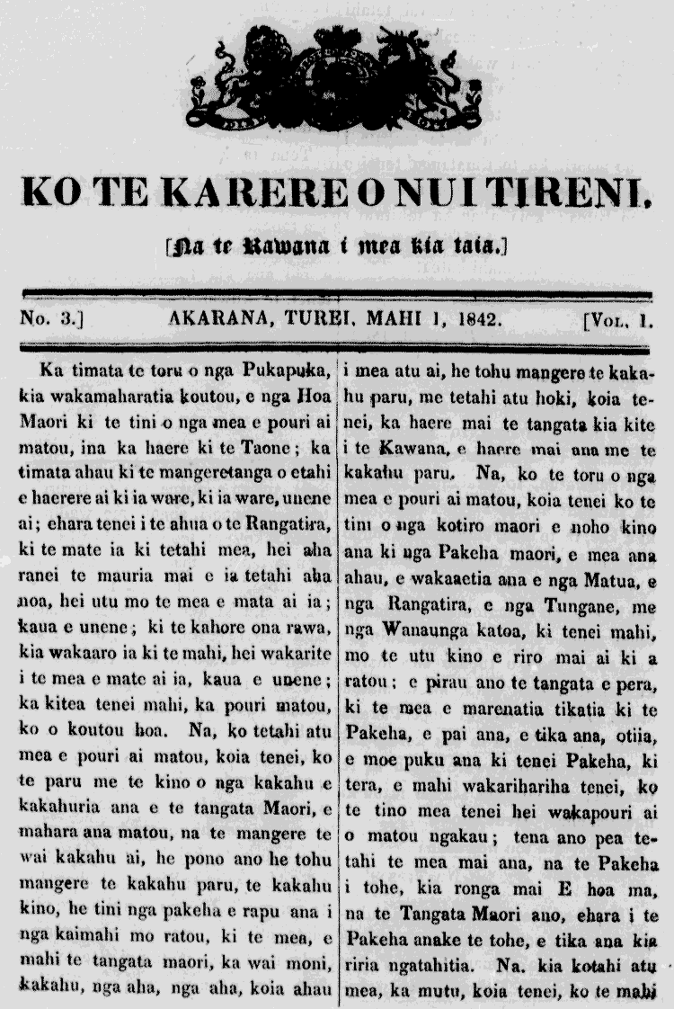Te Karere O Nui Tireni 1842-1846: Volume 1, Number 3. 01 March 1842 |