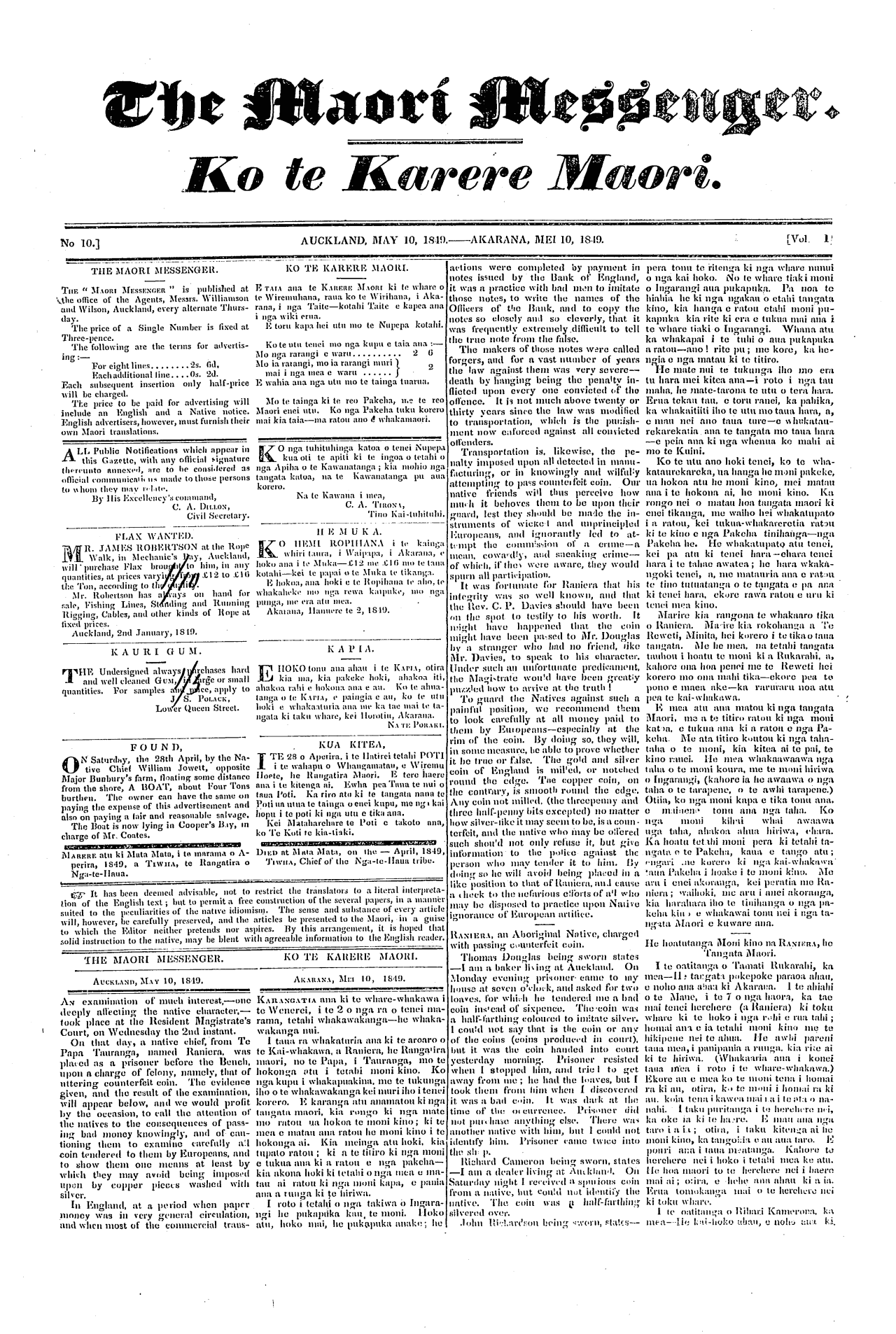 The Maori Messenger - Ko te Karere Maori 1849-1854: Volume 1, Number 10. 10 May 1849