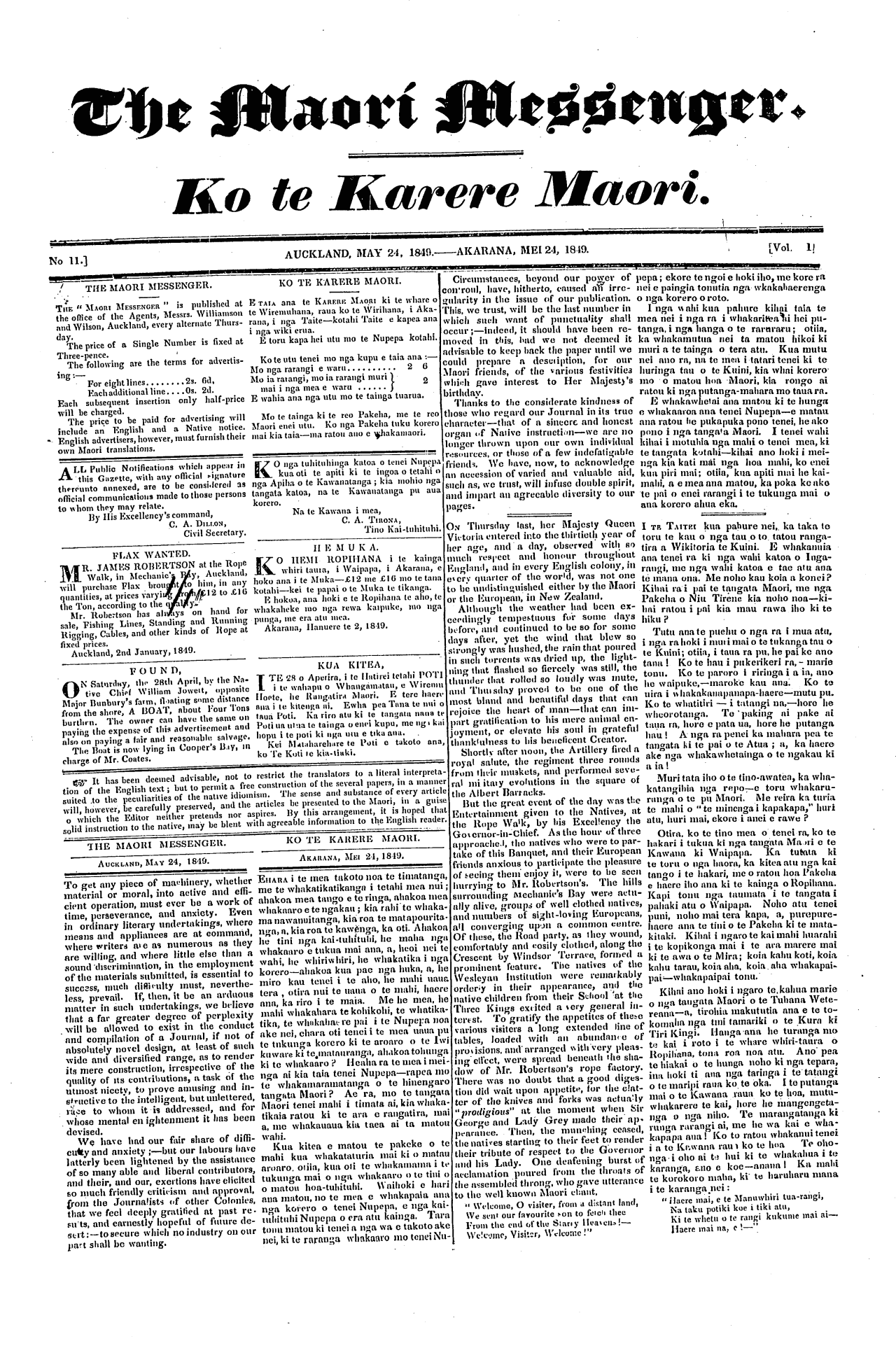 The Maori Messenger - Ko te Karere Maori 1849-1854: Volume 1, Number 11. 24 May 1849
