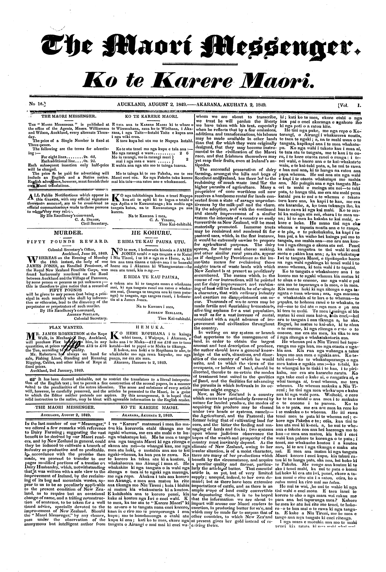 The Maori Messenger - Ko te Karere Maori 1849-1854: Volume 1, Number 16. 02 August 1849
