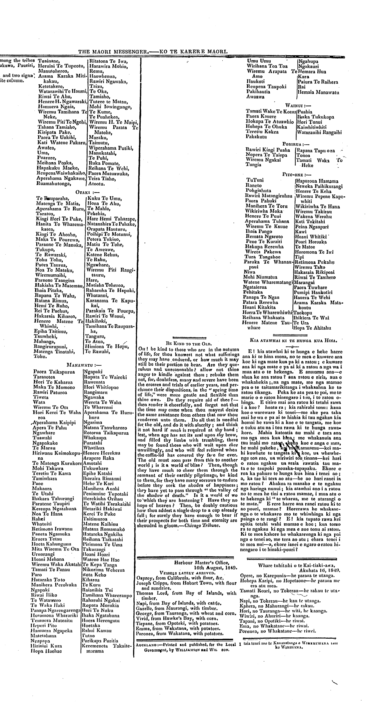 The Maori Messenger - Ko te Karere Maori 1849-1854: Volume 1, Number 17. 16 August 1849