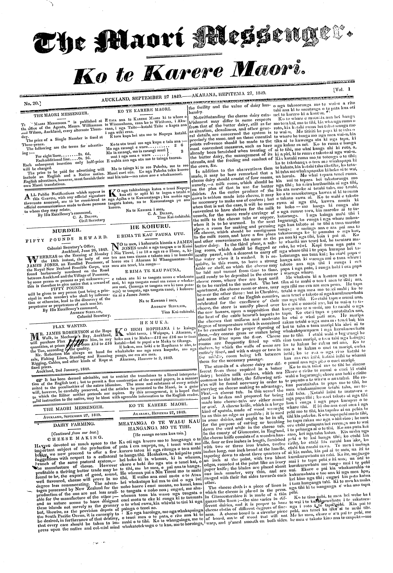 The Maori Messenger - Ko te Karere Maori 1849-1854: Volume 1, Number 20. 27 September 1849