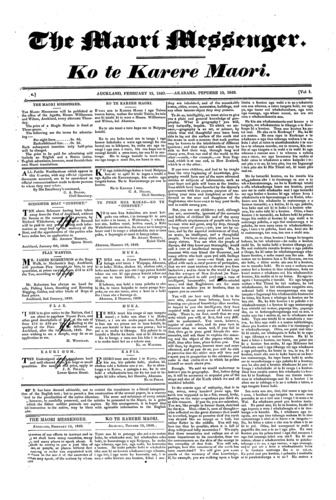 The Maori Messenger - Ko te Karere Maori 1849-1854: Volume 1, Number 4. 15 February 1849