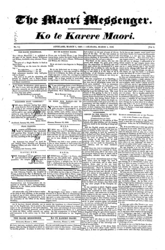The Maori Messenger - Ko te Karere Maori 1849-1854: Volume 1, Number 5. 01 March 1849