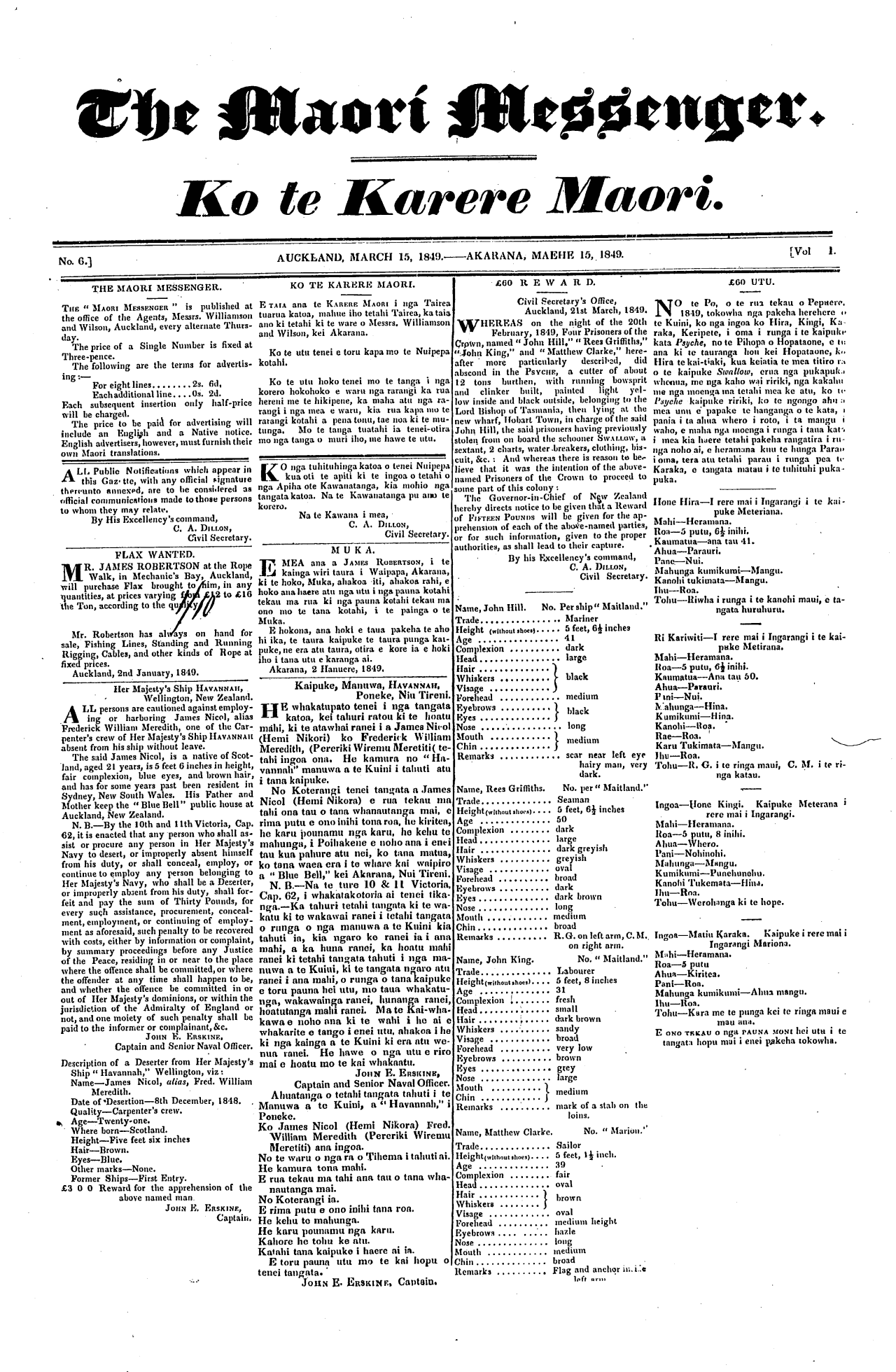 The Maori Messenger - Ko te Karere Maori 1849-1854: Volume 1, Number 6. 15 March 1849