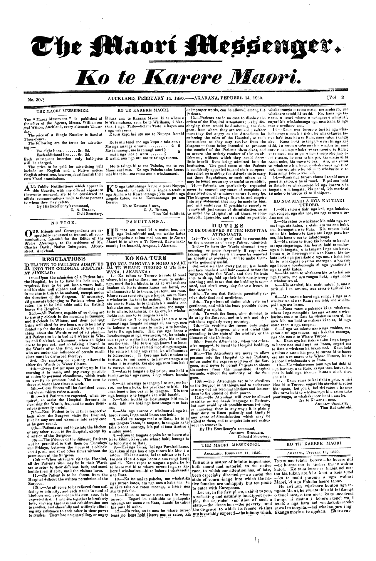 The Maori Messenger - Ko te Karere Maori 1849-1854: Volume 2, Number 30. 14 February 1850