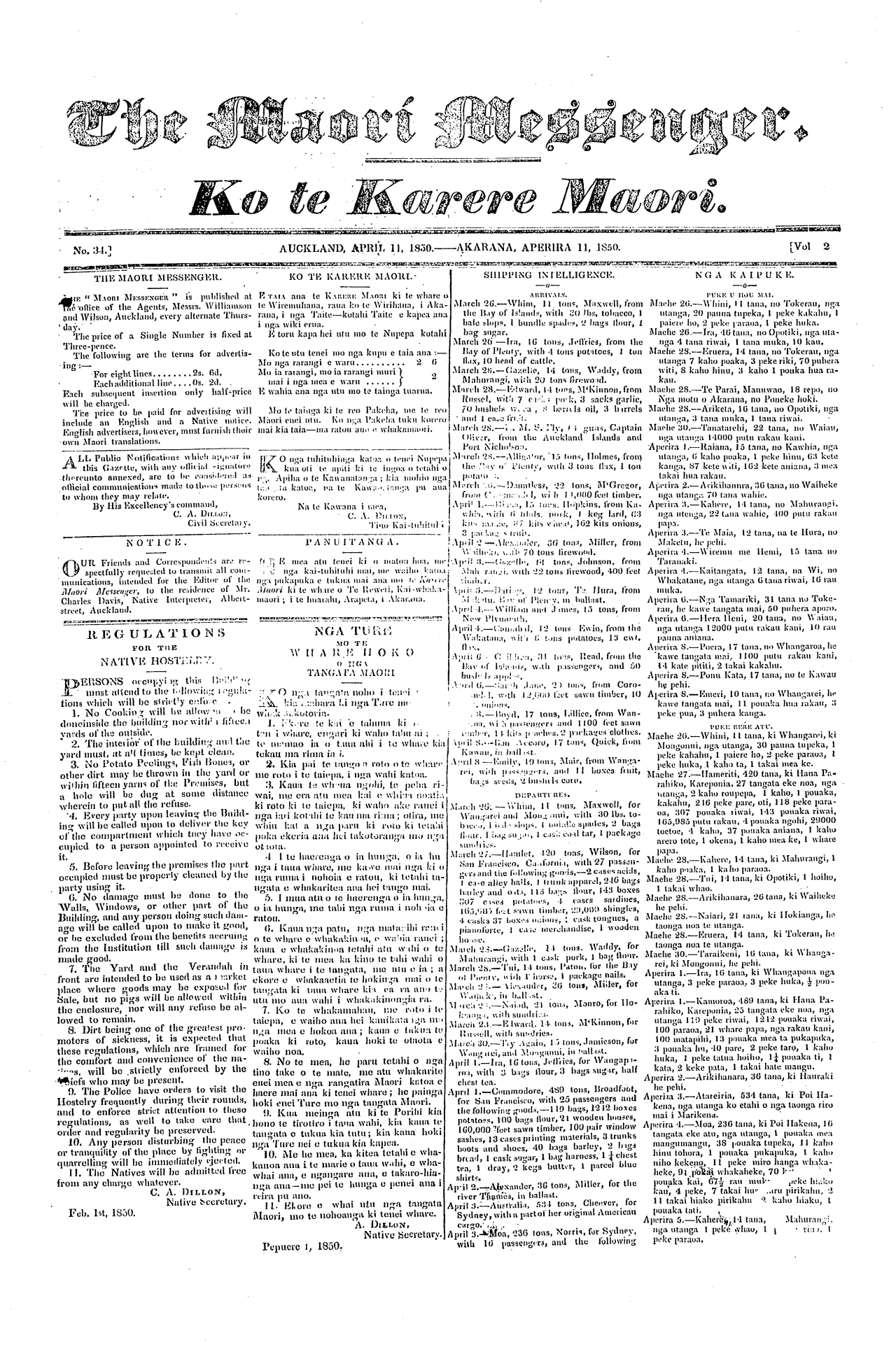 The Maori Messenger - Ko te Karere Maori 1849-1854: Volume 2, Number 34. 11 April 1850