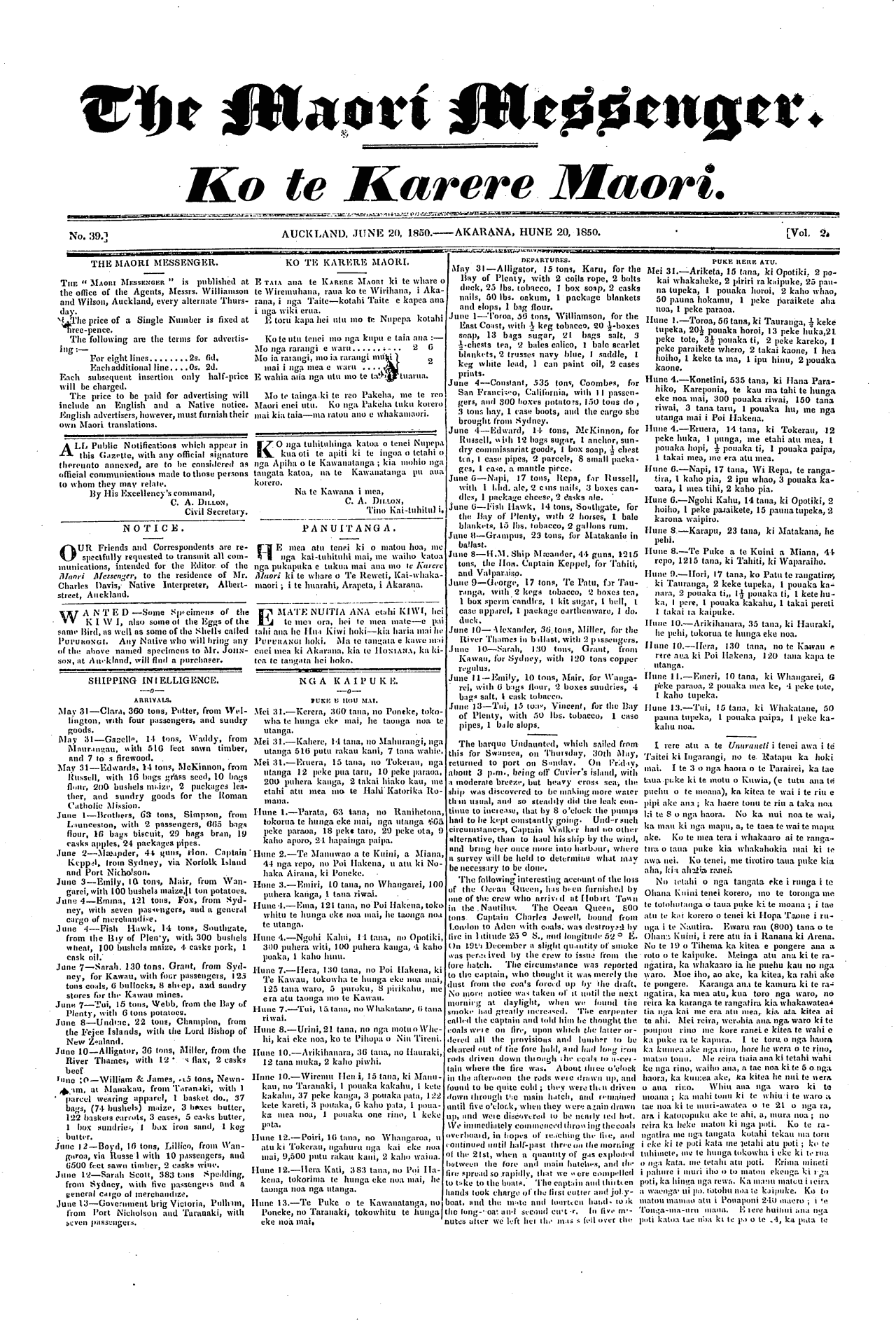 The Maori Messenger - Ko te Karere Maori 1849-1854: Volume 2, Number 39. 20 June 1850