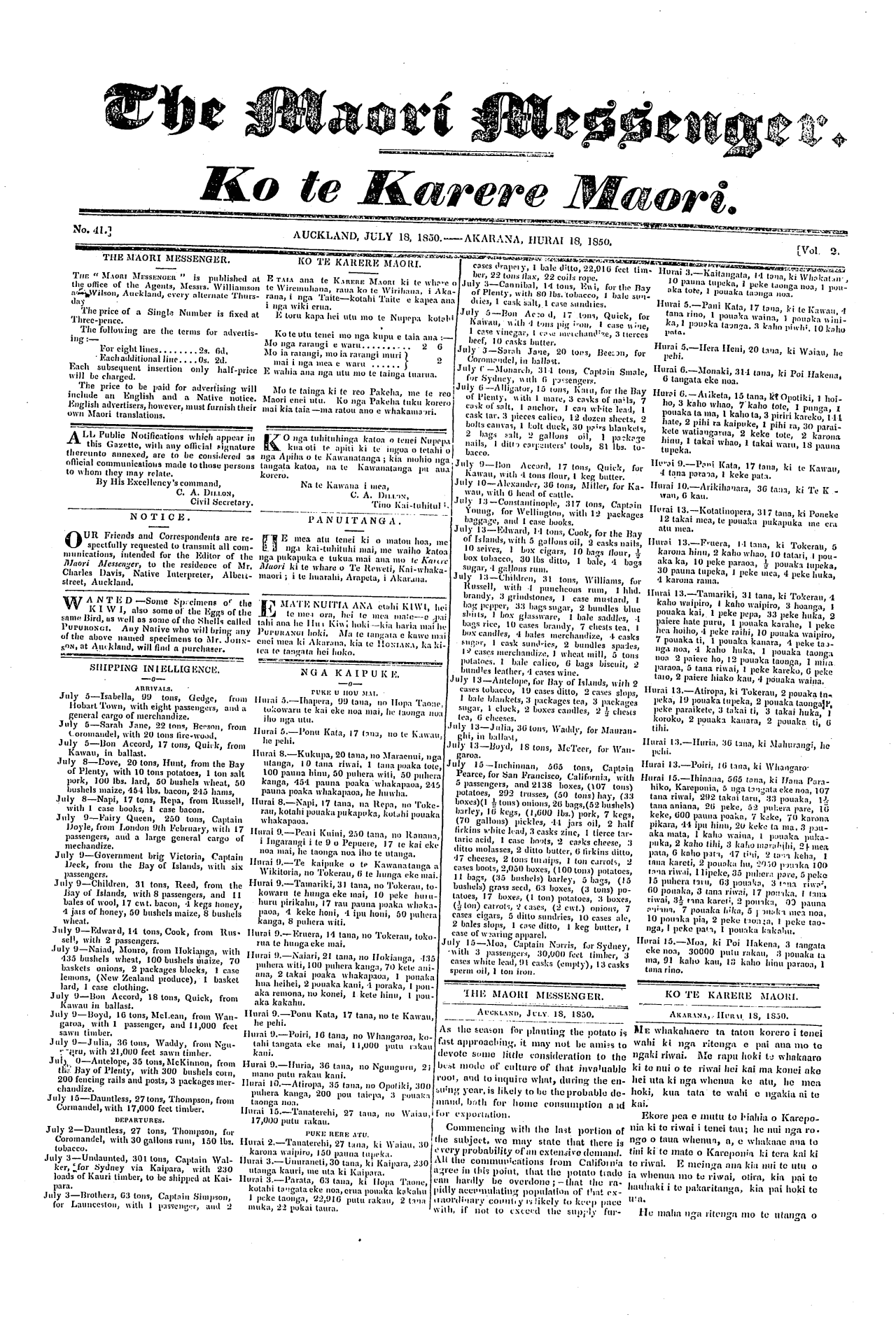 The Maori Messenger - Ko te Karere Maori 1849-1854: Volume 2, Number 41. 18 July 1850