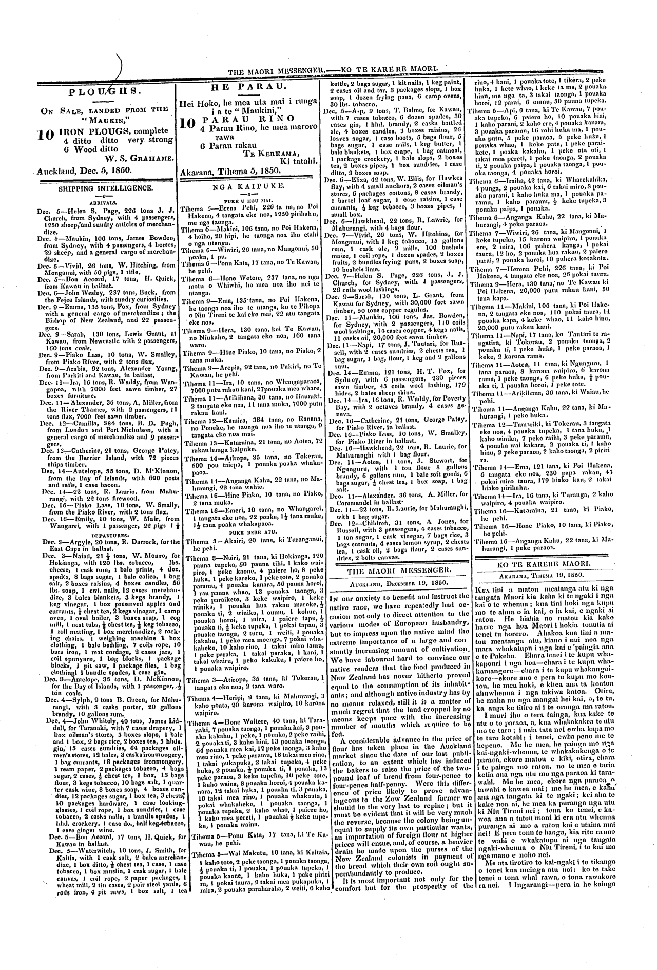 The Maori Messenger - Ko te Karere Maori 1849-1854: Volume 2, Number 52. 19 December 1850