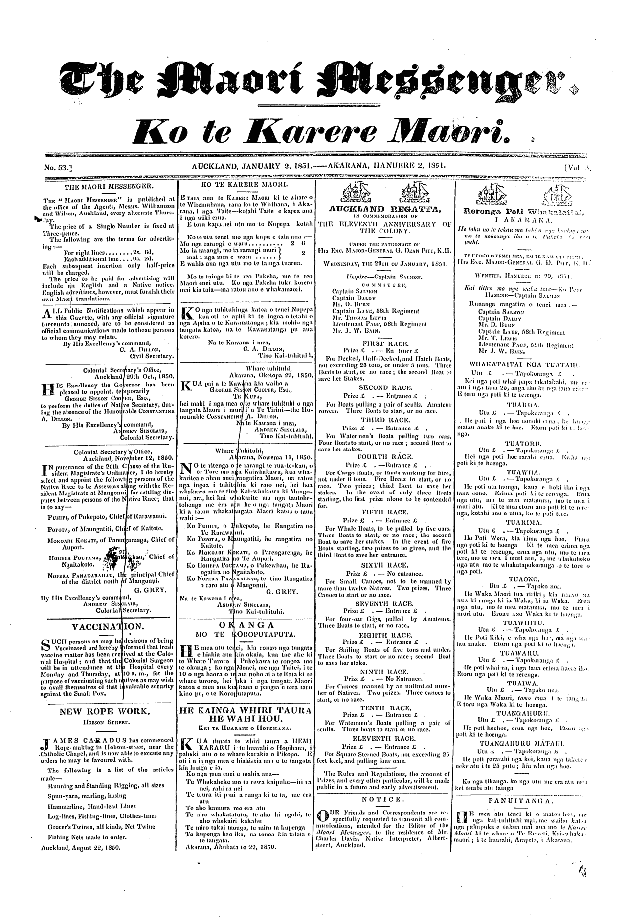 The Maori Messenger - Ko te Karere Maori 1849-1854: Volume 3, Number 53. 02 January 1851