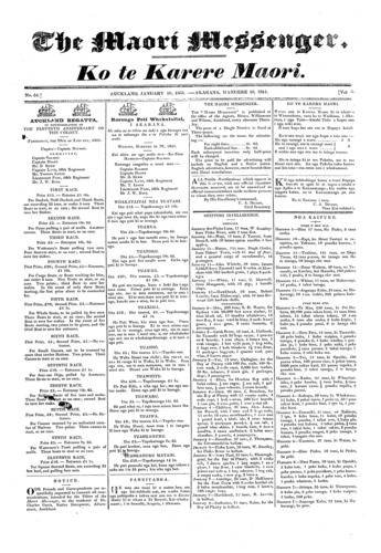 The Maori Messenger - Ko te Karere Maori 1849-1854: Volume 3, Number 54. 16 January 1851