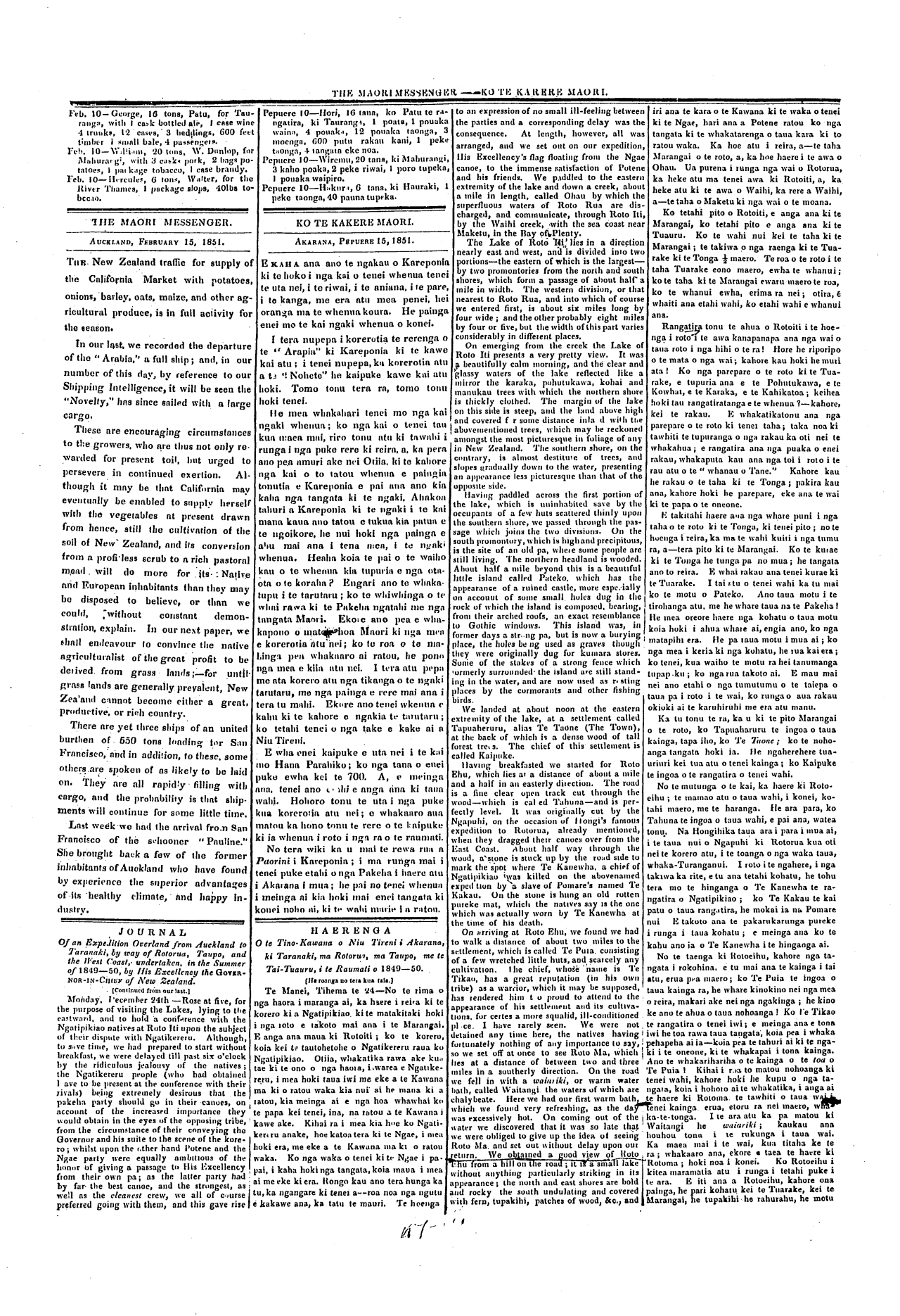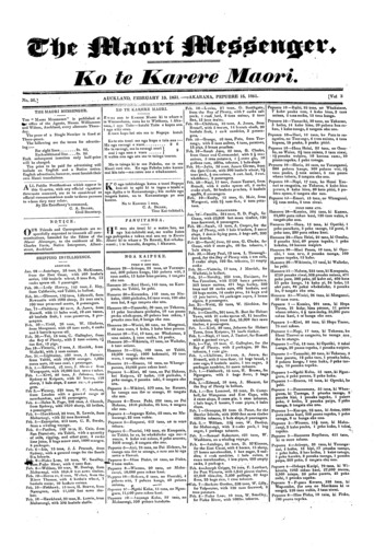 The Maori Messenger - Ko te Karere Maori 1849-1854: Volume 3, Number 56. 15 February 1851