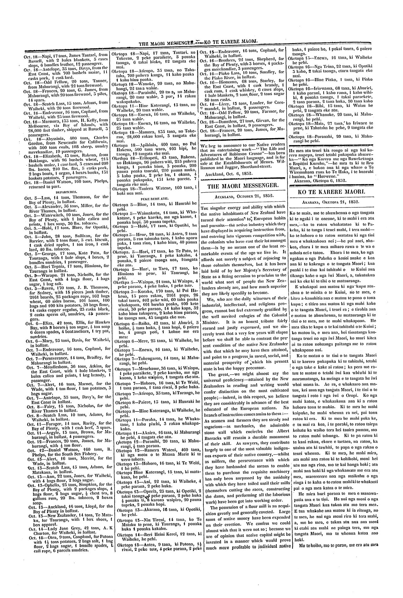 The Maori Messenger - Ko te Karere Maori 1849-1854: Volume 4, Number 100. 21 October 1852
