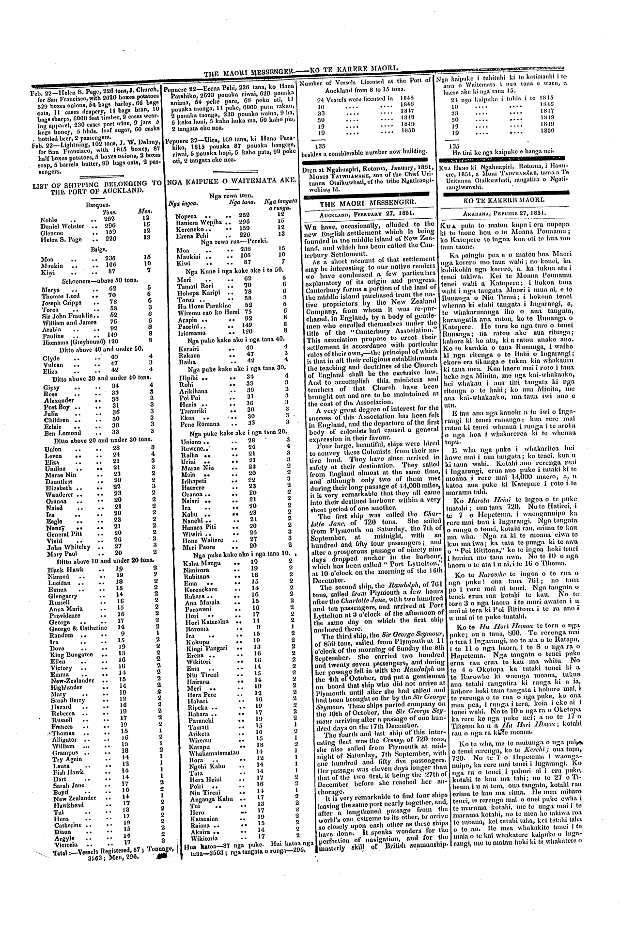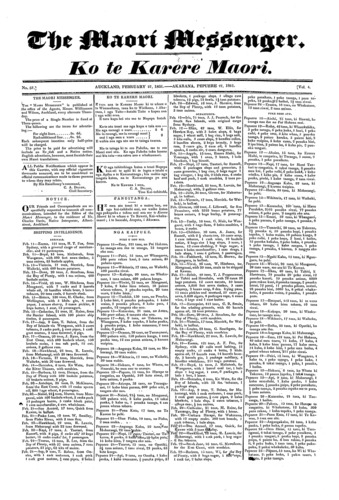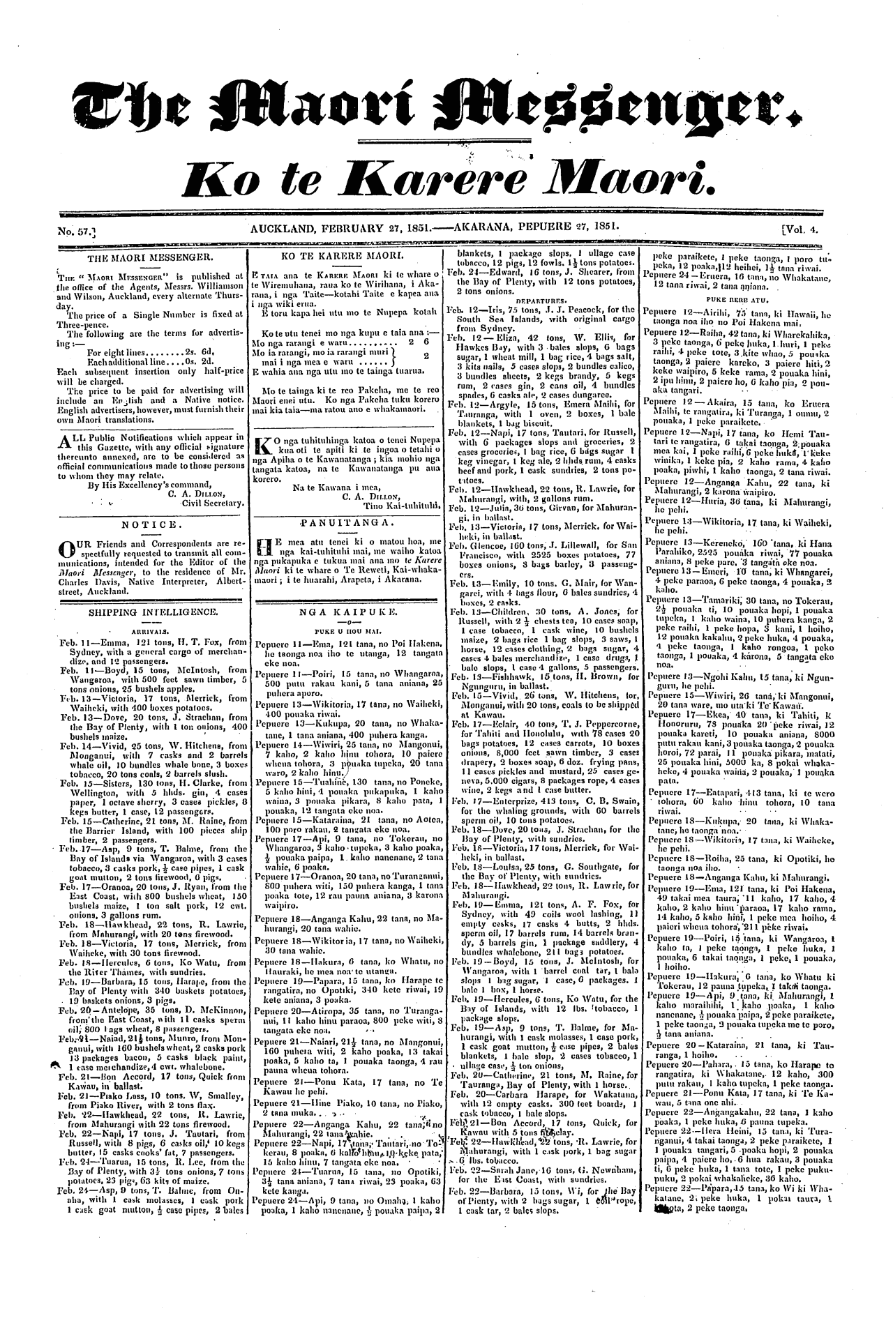 The Maori Messenger - Ko te Karere Maori 1849-1854: Volume 4, Number 57. 27 February 1851