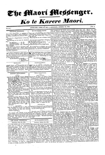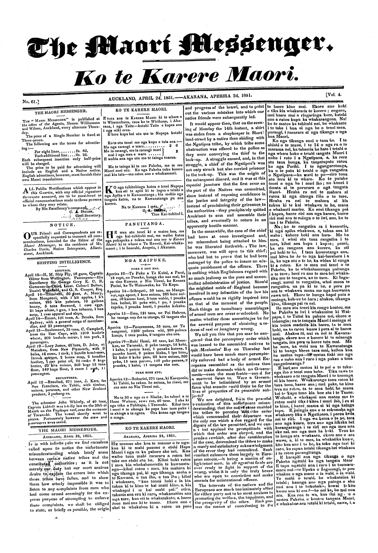 The Maori Messenger - Ko te Karere Maori 1849-1854: Volume 4, Number 61. 24 April 1851
