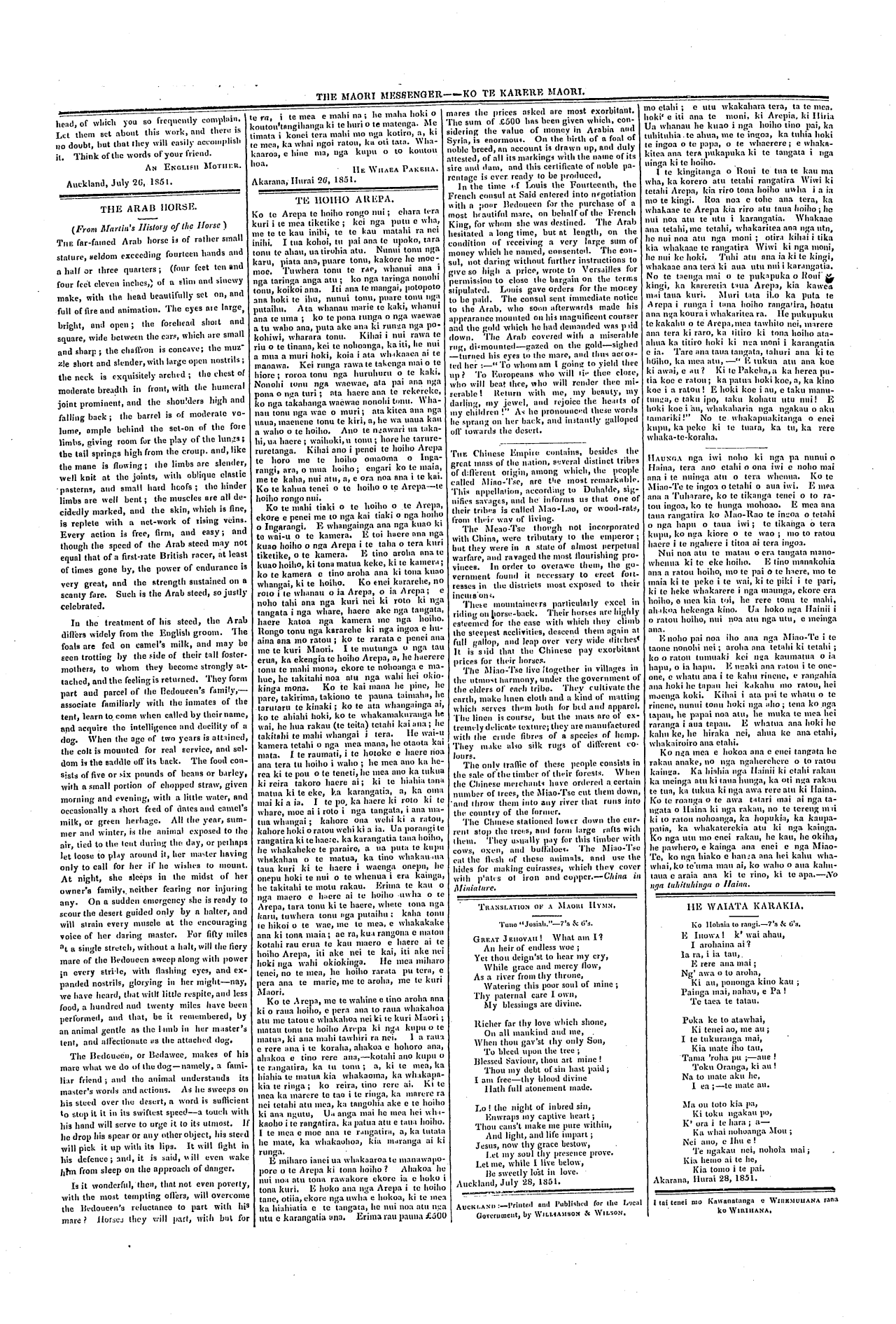 The Maori Messenger - Ko te Karere Maori 1849-1854: Volume 4, Number 68. 31 July 1851