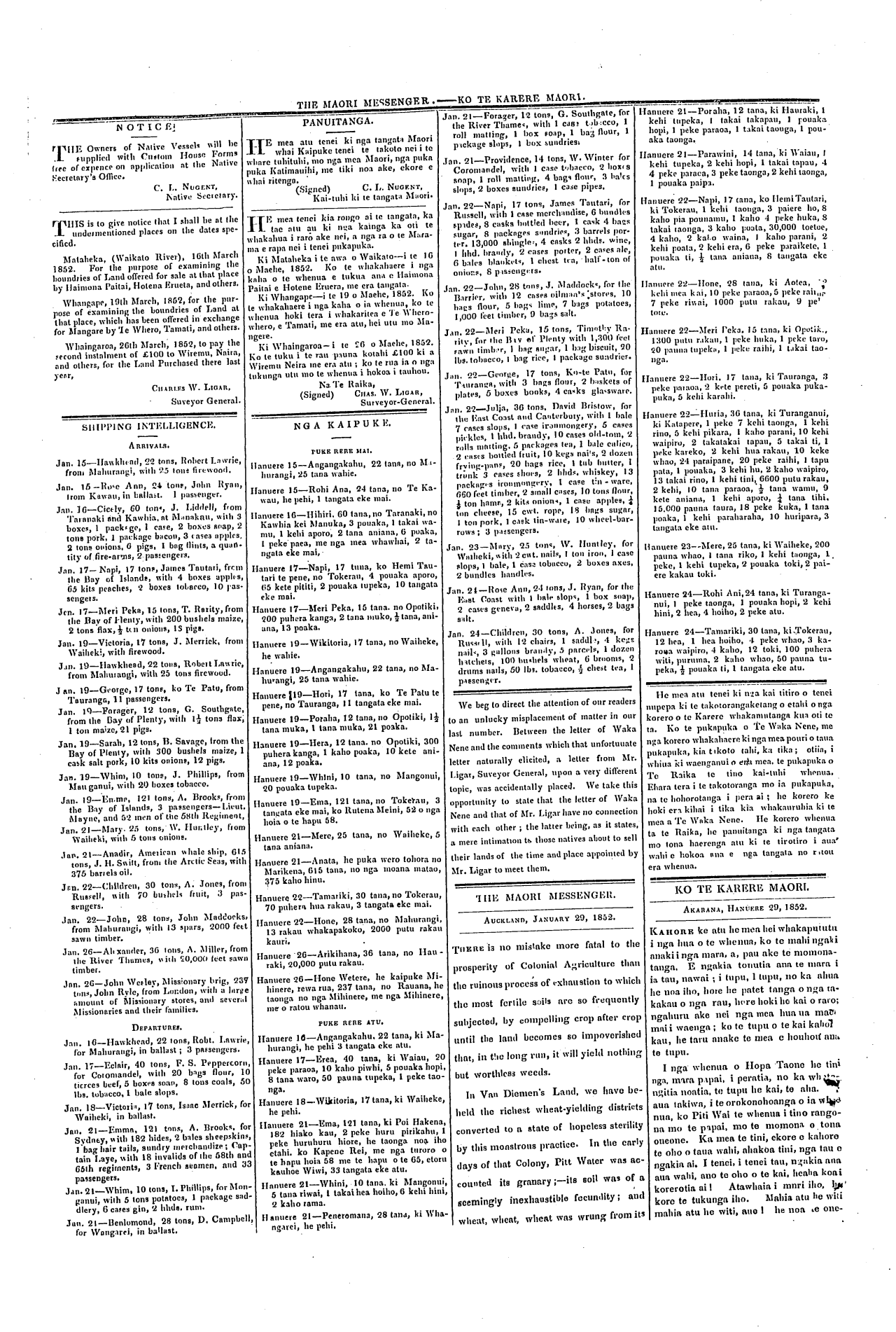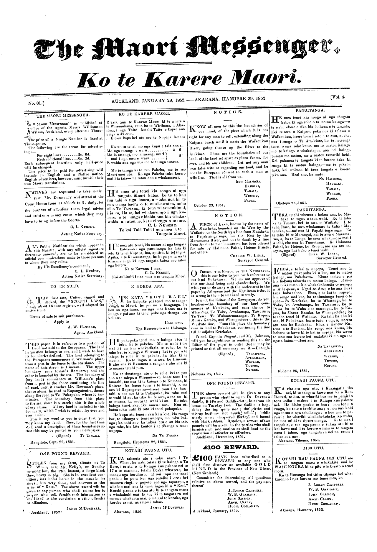 The Maori Messenger - Ko te Karere Maori 1849-1854: Volume 4, Number 81. 29 January 1852
