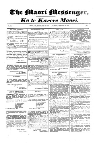 The Maori Messenger - Ko te Karere Maori 1849-1854: Volume 4, Number 82. 12 February 1852