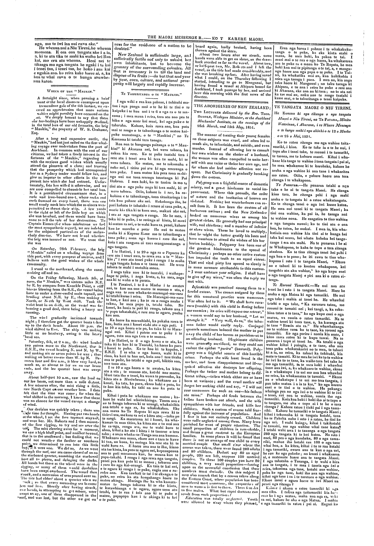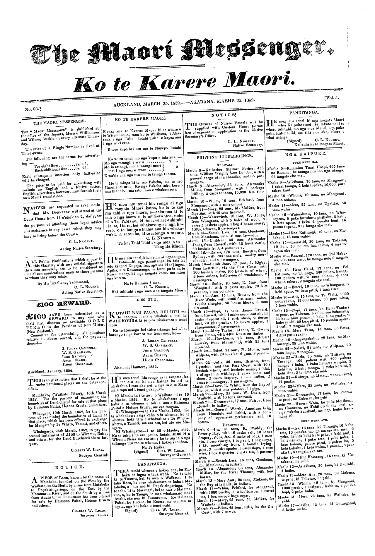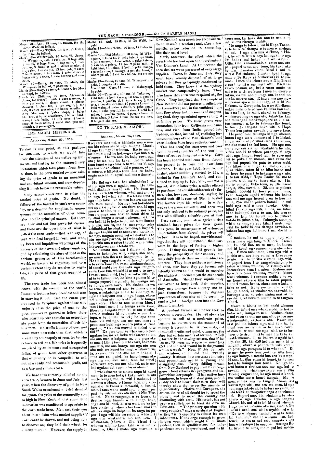 The Maori Messenger - Ko te Karere Maori 1849-1854: Volume 4, Number 85. 25 March 1852