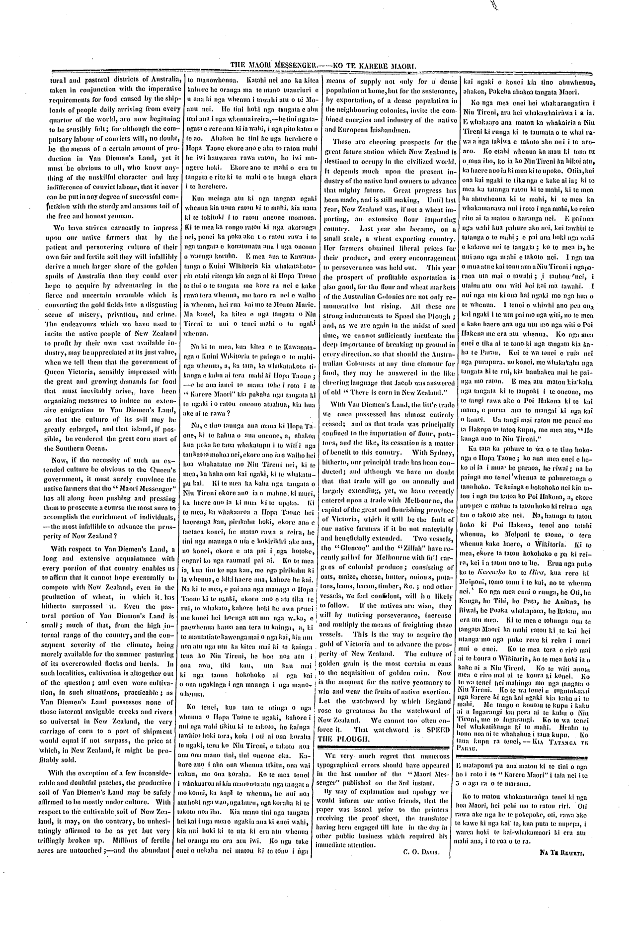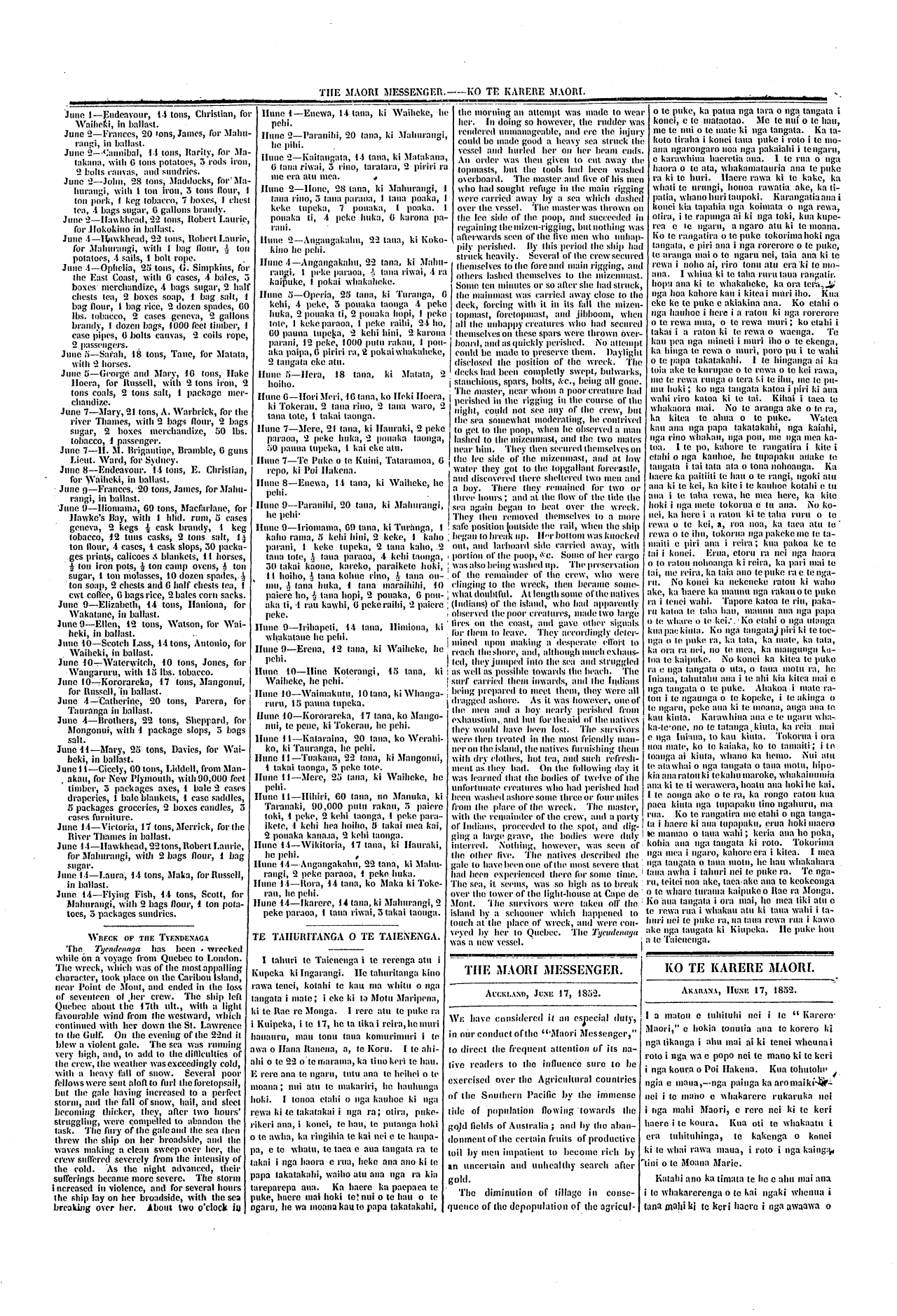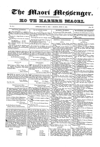 The Maori Messenger - Ko te Karere Maori 1849-1854: Volume 4, Number 91. 17 June 1852