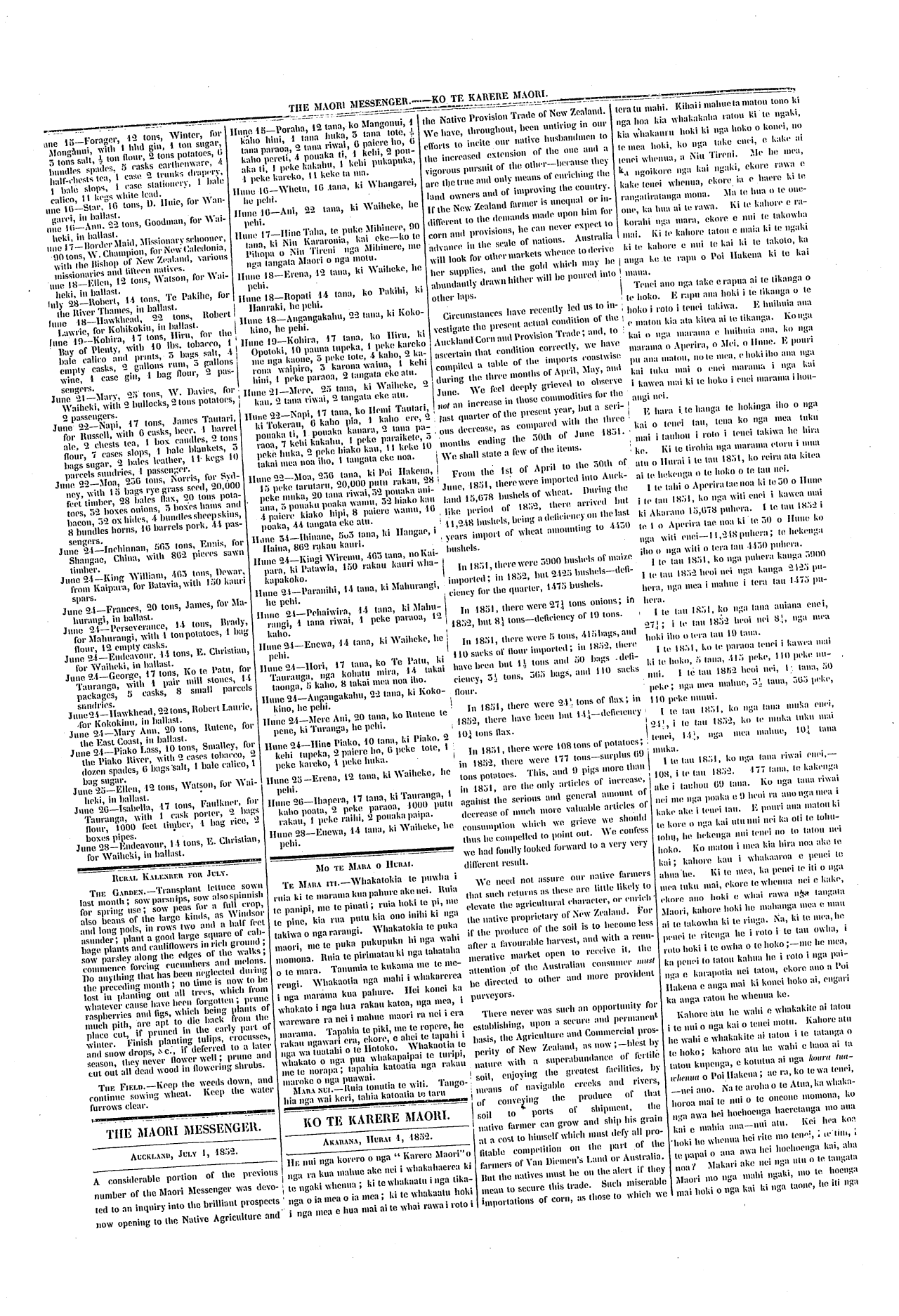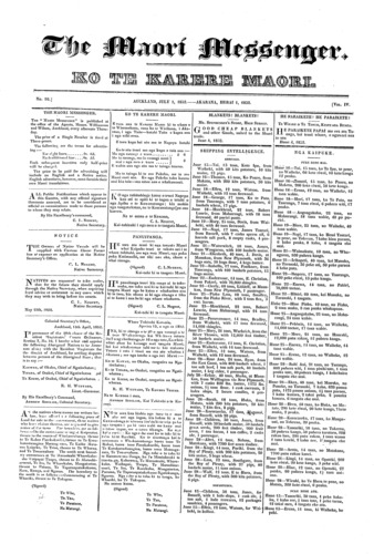 The Maori Messenger - Ko te Karere Maori 1849-1854: Volume 4, Number 92. 01 July 1852