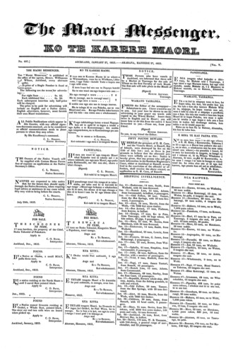 The Maori Messenger - Ko te Karere Maori 1849-1854: Volume 5, Number 107. 27 January 1853