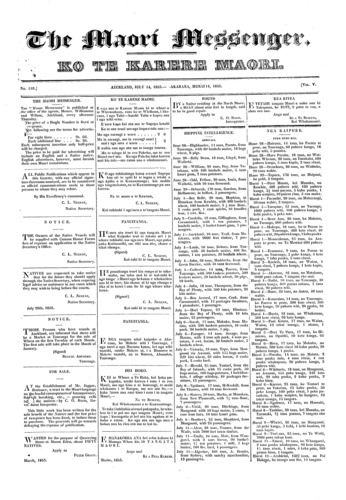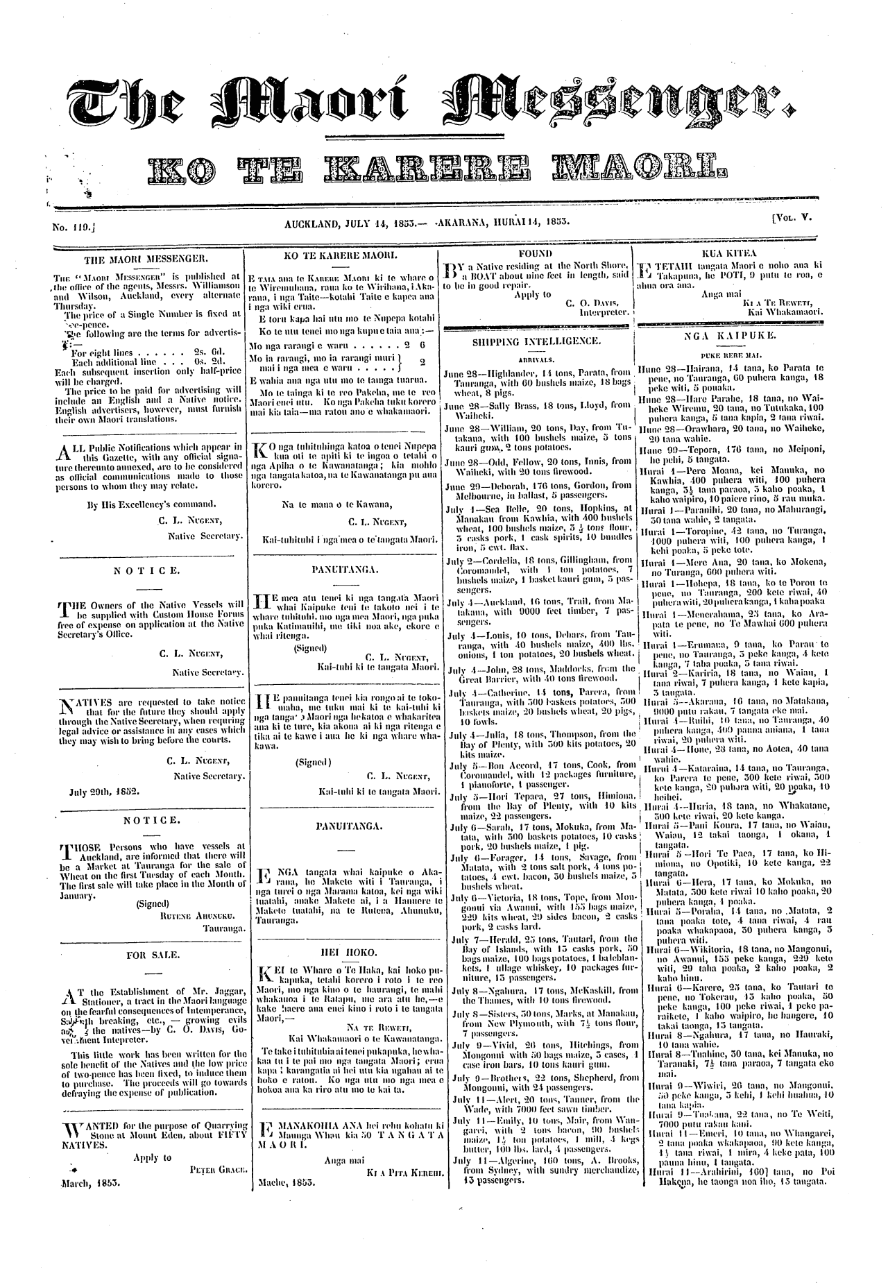 The Maori Messenger - Ko te Karere Maori 1849-1854: Volume 5, Number 119. 15 July 1853