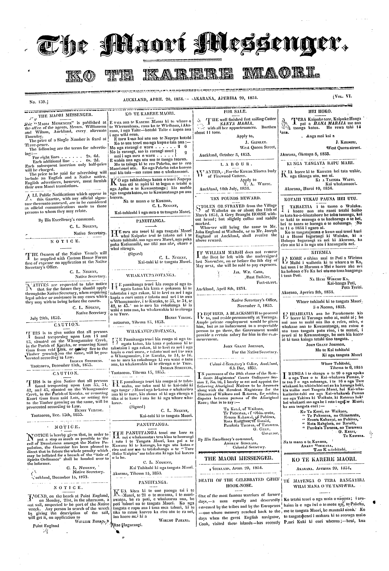 The Maori Messenger - Ko te Karere Maori 1849-1854: Volume 6, Number 139. 20 April 1854