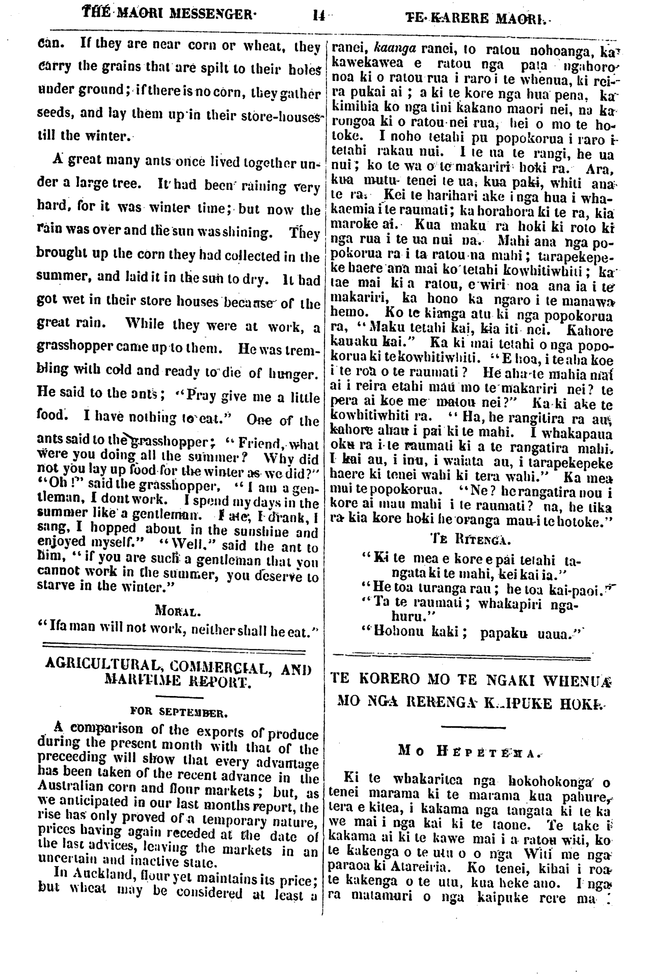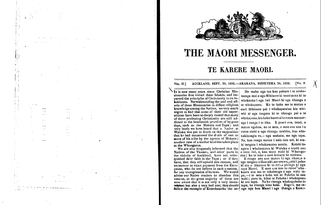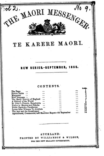 The Maori Messenger - Ko te Karere Maori 1855-1860: Volume 2, Number 9. 30 September 1856 |