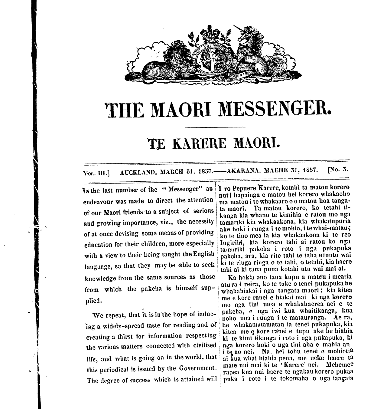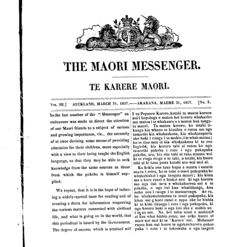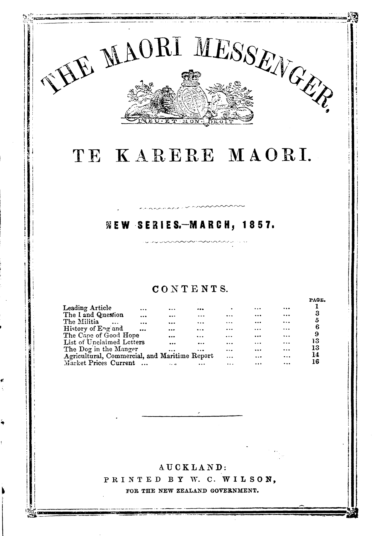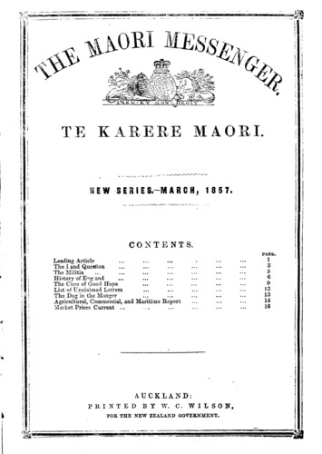 The Maori Messenger - Ko te Karere Maori 1855-1860: Volume 3, Number 3. 31 March 1857 |