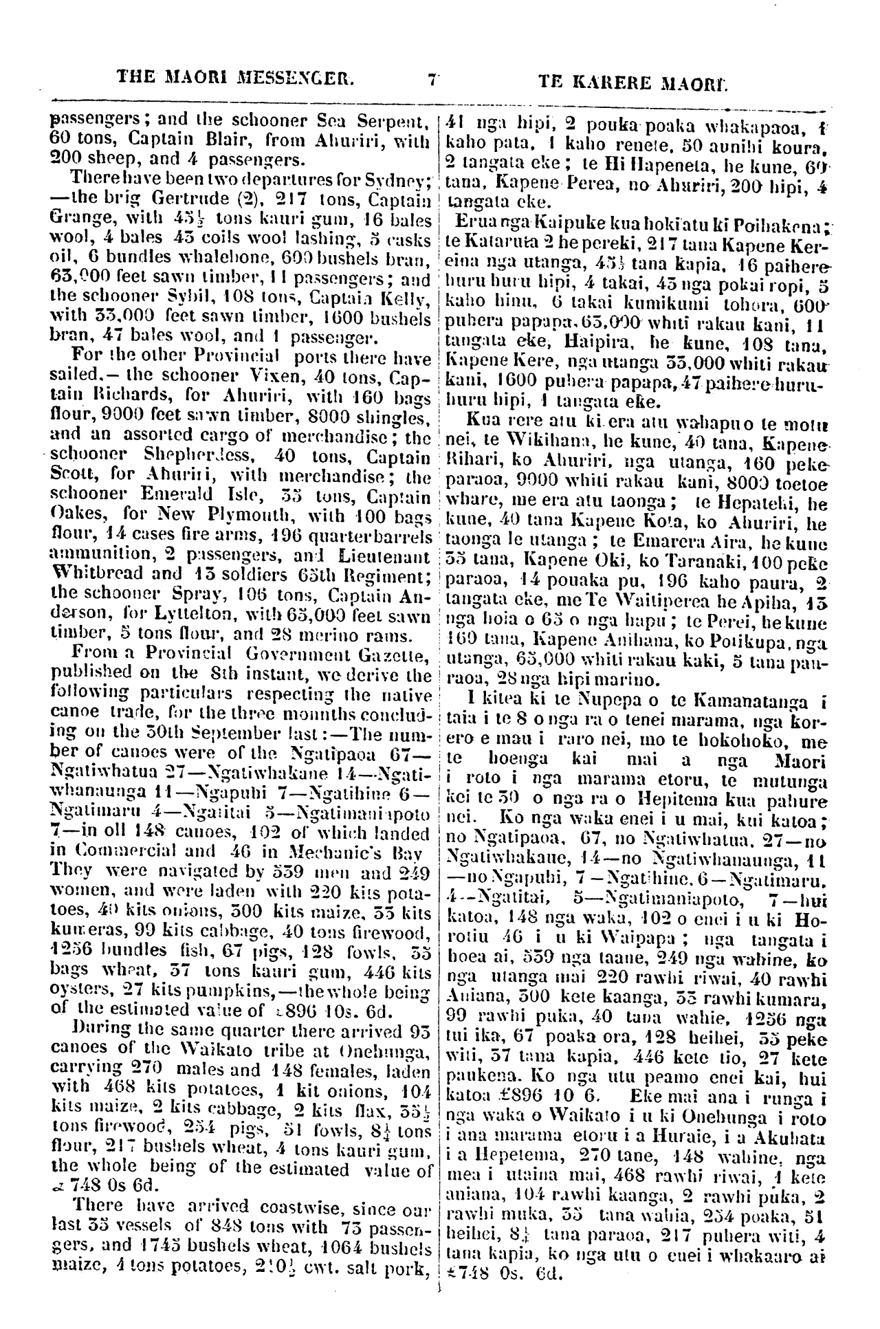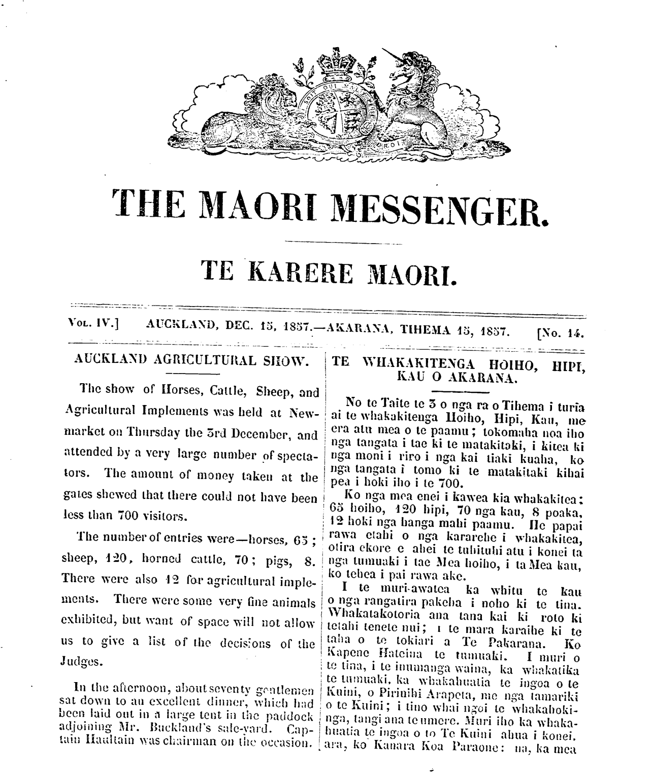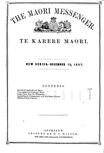 The Maori Messenger - Ko te Karere Maori 1855-1860: Volume 4, Number 14. 15 December 1857 |