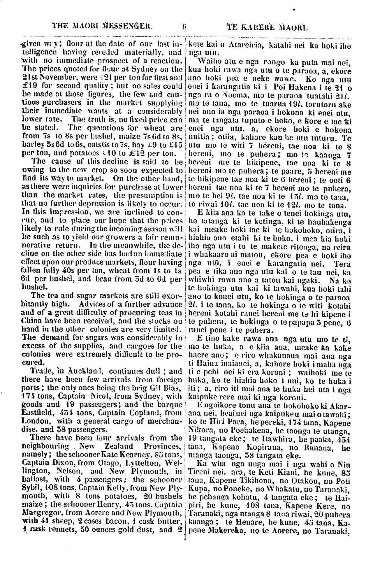 THE MAORl MESSENGER. TE KARERE MAORl. AGRICULTURAL, COMMERCIAL, AND | MARITIME REPORT. ————— FROM THE 1ST TO THE 15TH DECEMBER. The grain markets of Australia, so long in a dull, inactive, state, have, at length, |KORERO NGAKINGA KAI, HOKOHOKO, ME TE MAHI O NGA KAIPUKE. NO TE 1 TAE KOA KI TE 15 0 NGA RA 0 TIHEMA. Roa noa te ngoikore hokohoko i nga Ma-
