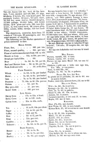 THE MAORl MESSENGER. 8 TE KARERE MAORL BREAD STUFFS FARM PRODUCE LIVE STOCK GROCERIES DAIRY PRODUCE MEA PARAOA MEA TE MARA KARAREHE KAI KE