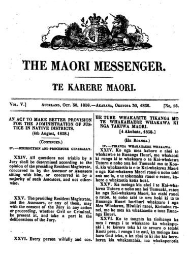 The Maori Messenger - Ko te Karere Maori 1855-1860: Volume 5, Number 21. 30 October 1858 |