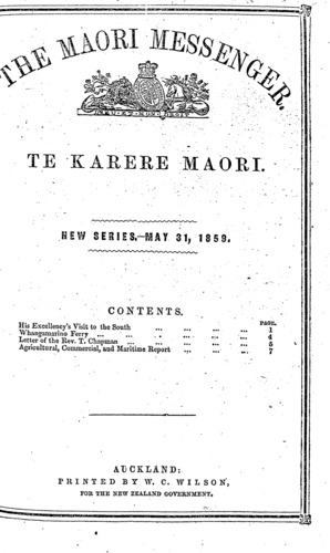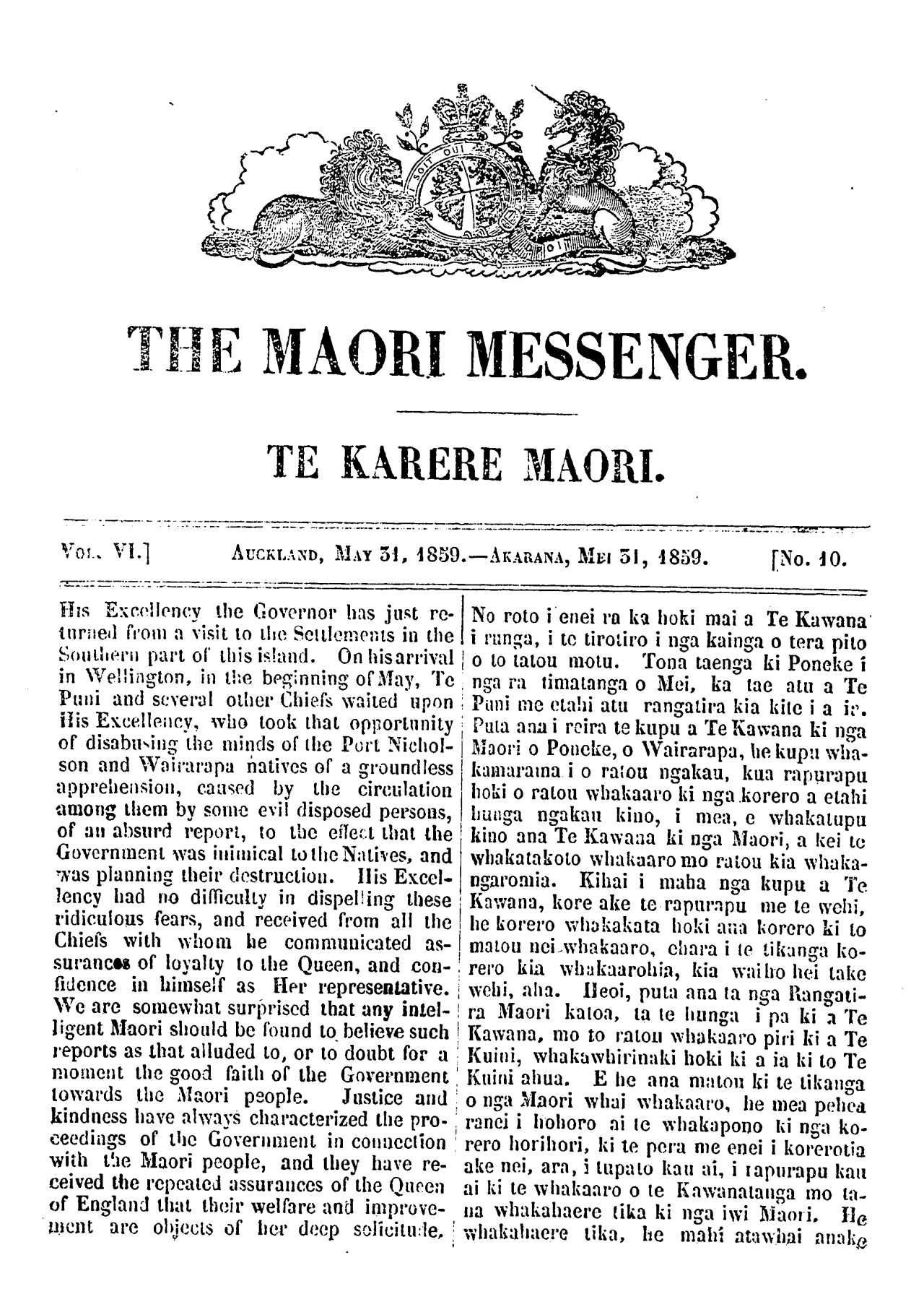 The Maori Messenger - Ko te Karere Maori 1855-1860: Volume 6, Number 10. 31 May 1859 |
