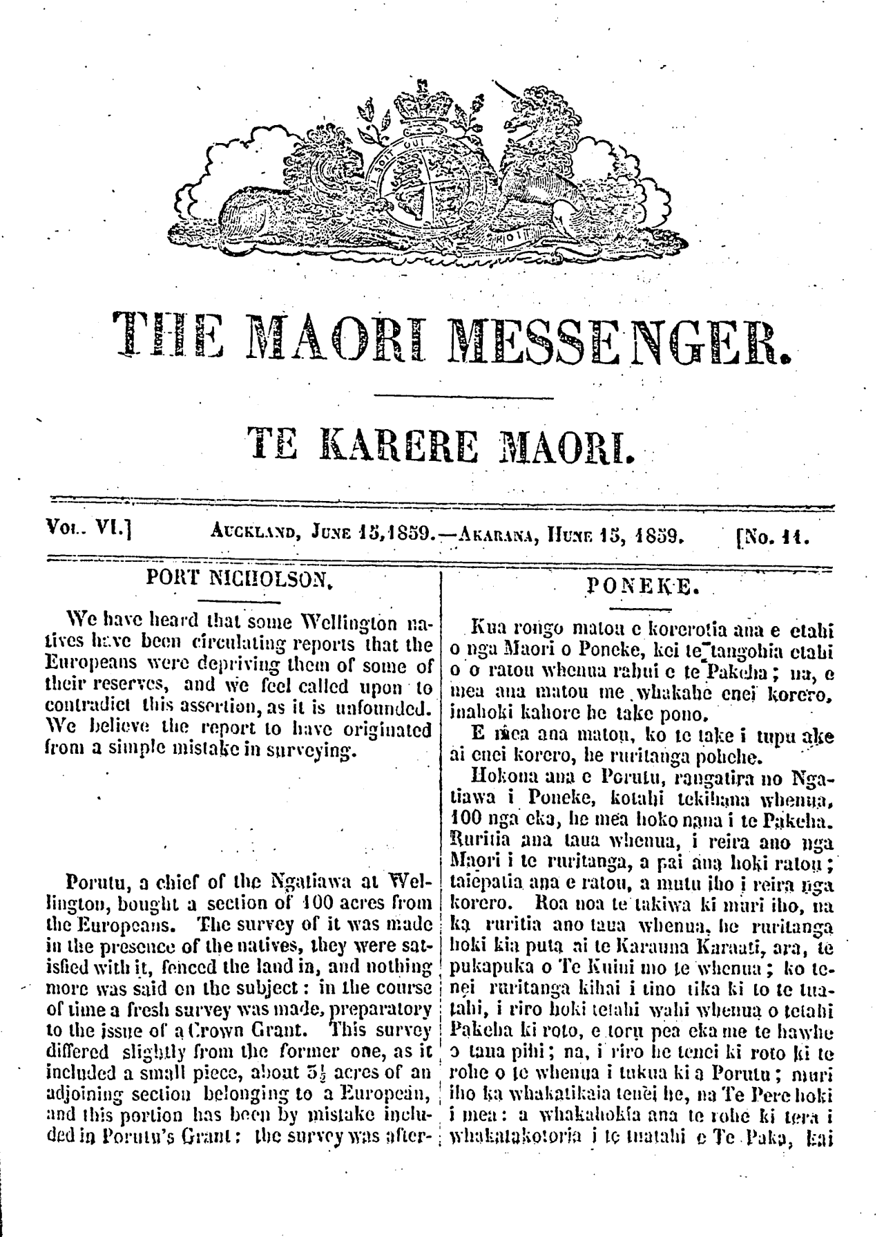 The Maori Messenger - Ko te Karere Maori 1855-1860: Volume 6, Number 11. 15 June 1859 |