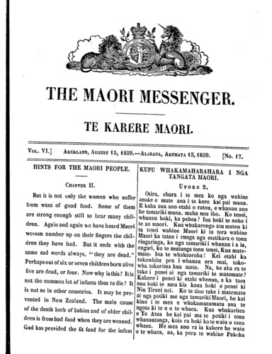 The Maori Messenger - Ko te Karere Maori 1855-1860: Volume 6, Number 17. 15 August 1859 |