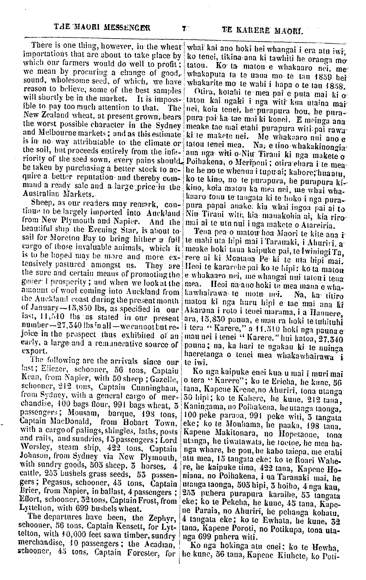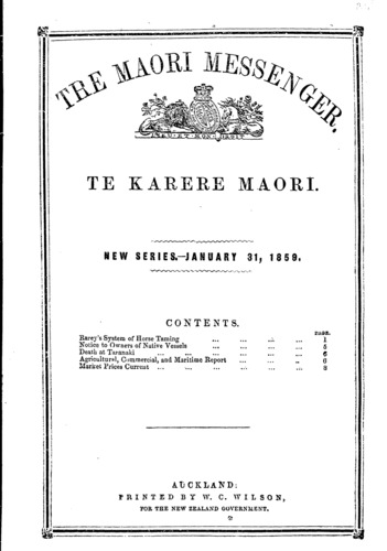 The Maori Messenger - Ko te Karere Maori 1855-1860: Volume 6, Number 2. 31 January 1859 |