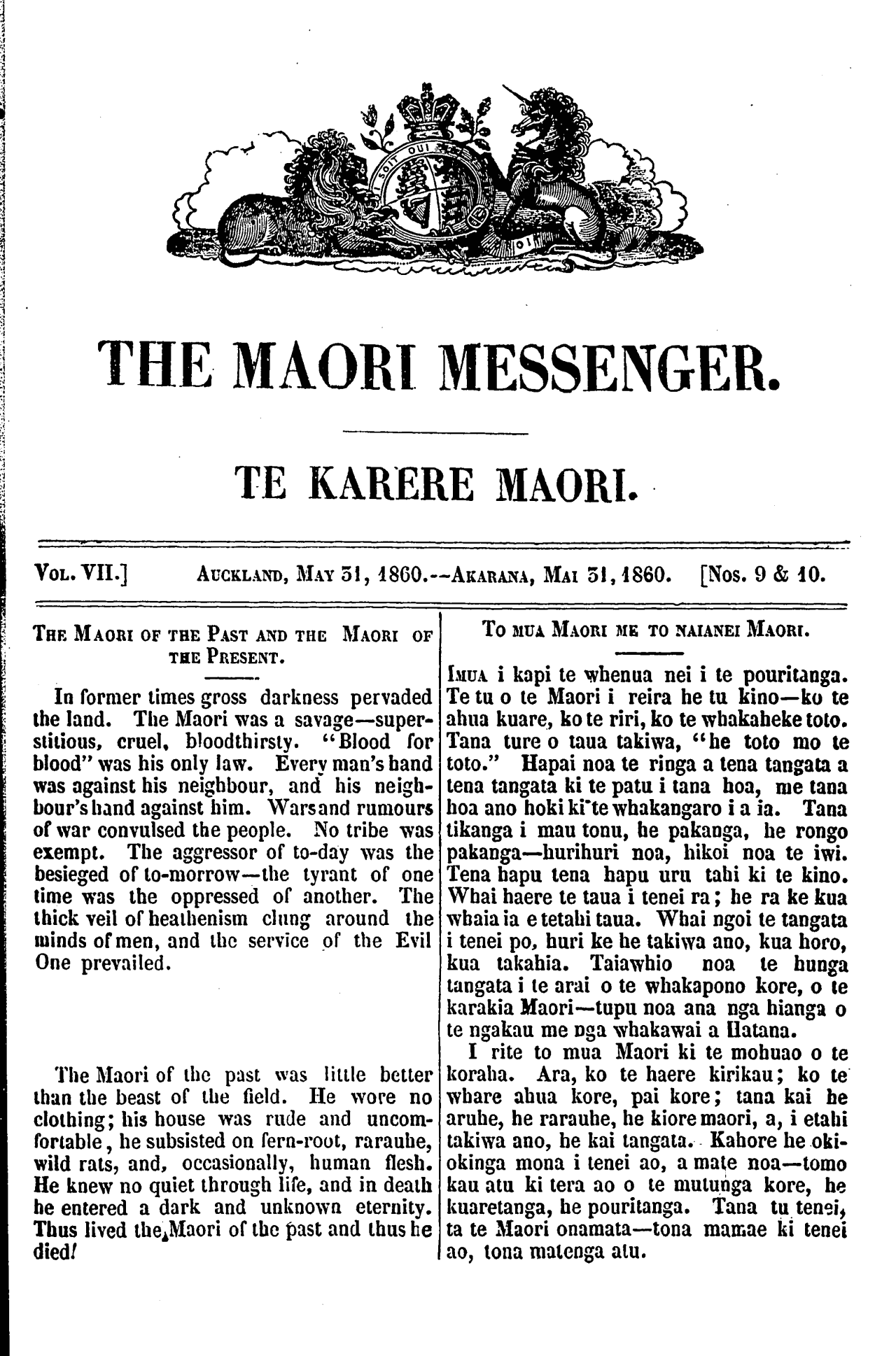 The Maori Messenger - Ko te Karere Maori 1855-1860: Volume 7, Number 9. 31 May 1860 |