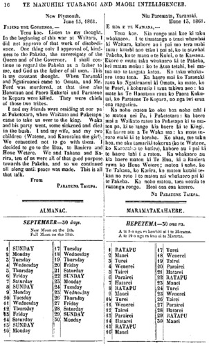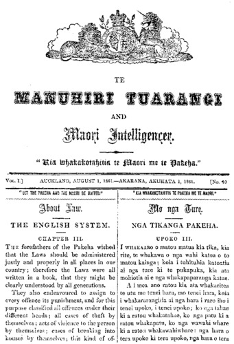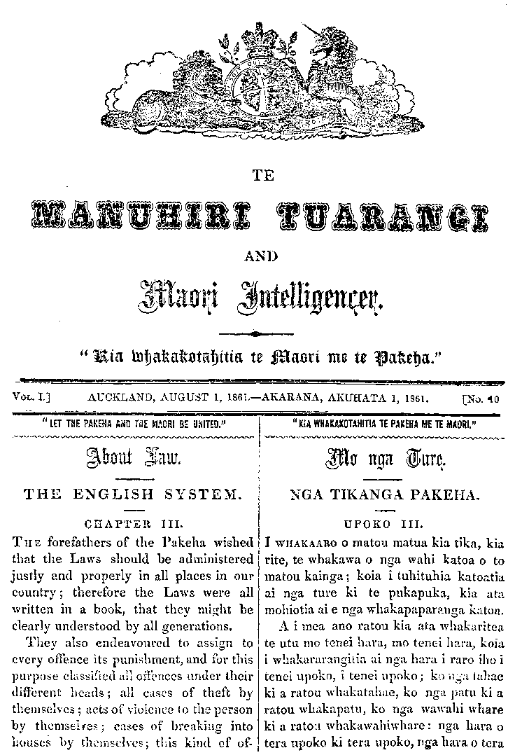 Te Manuhiri Tuarangi Maori Intelligencer 1861: Number 10. 01 August 1861 |