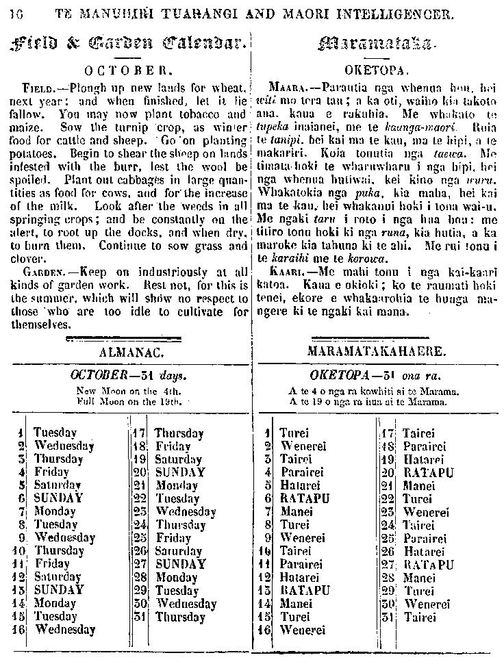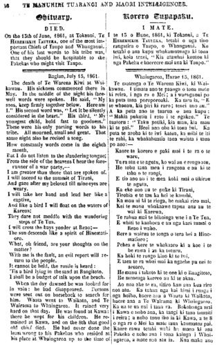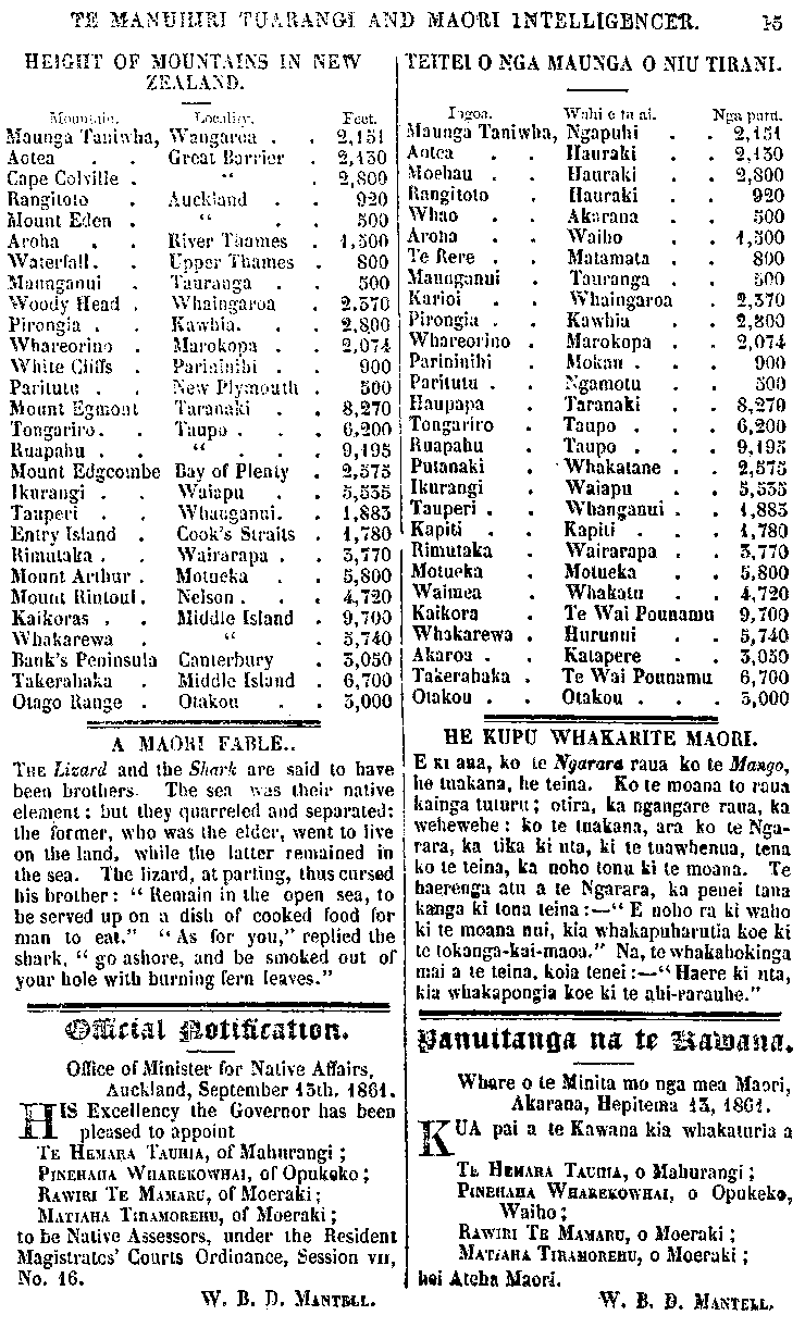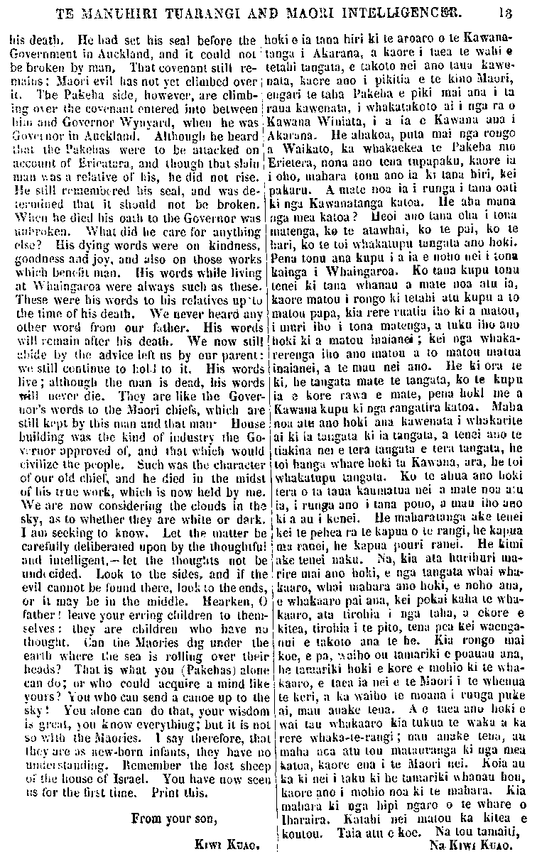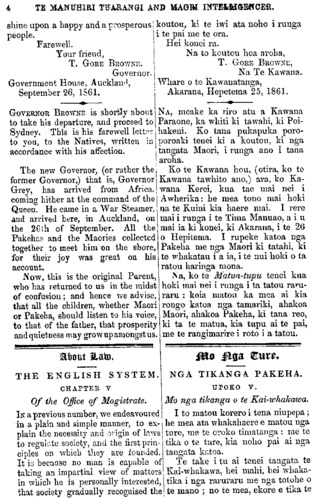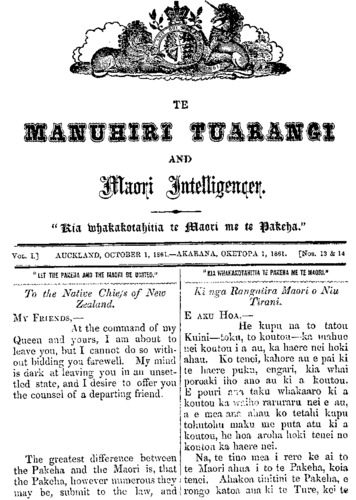 Te Manuhiri Tuarangi Maori Intelligencer 1861: Number 13. 01 October 1861 |