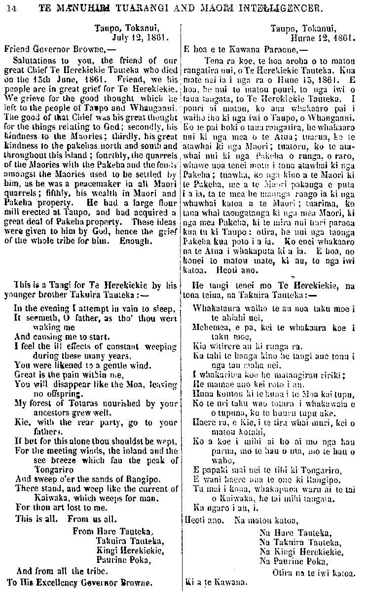16 TE MANUHIRI TUARANGI AND MAORI INTELLIGENCER.