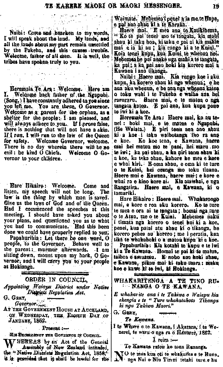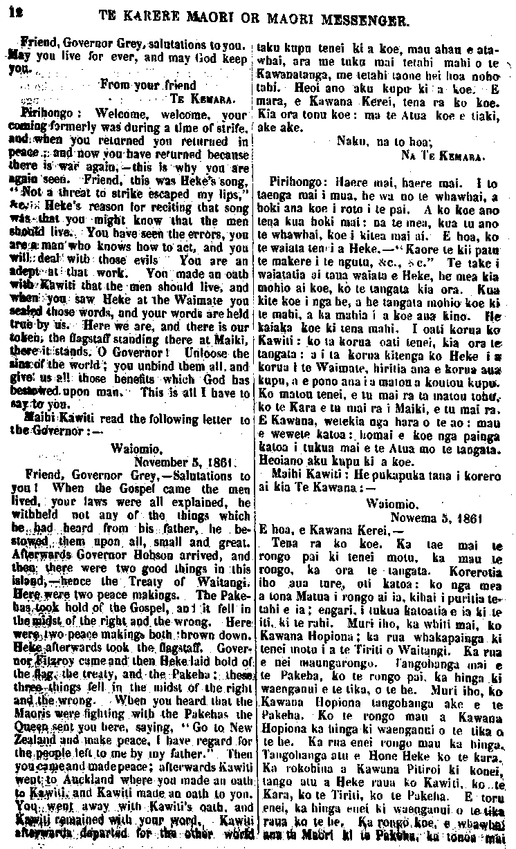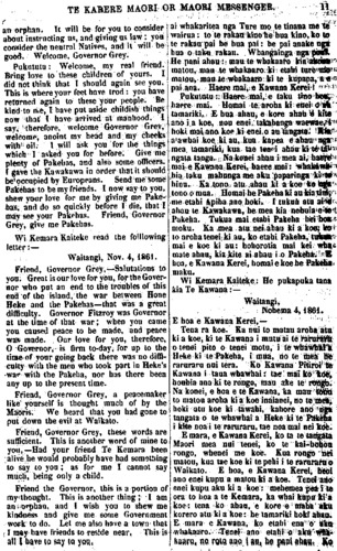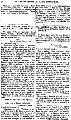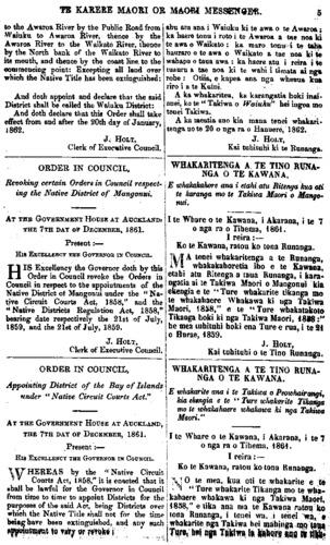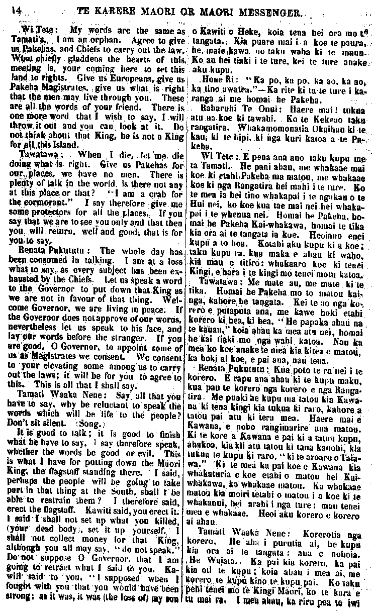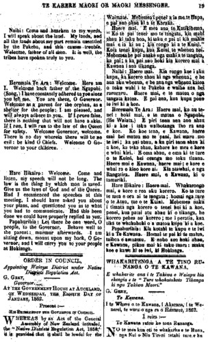 nga ki nga Takiwa Maori, 1858 ;" a e mea