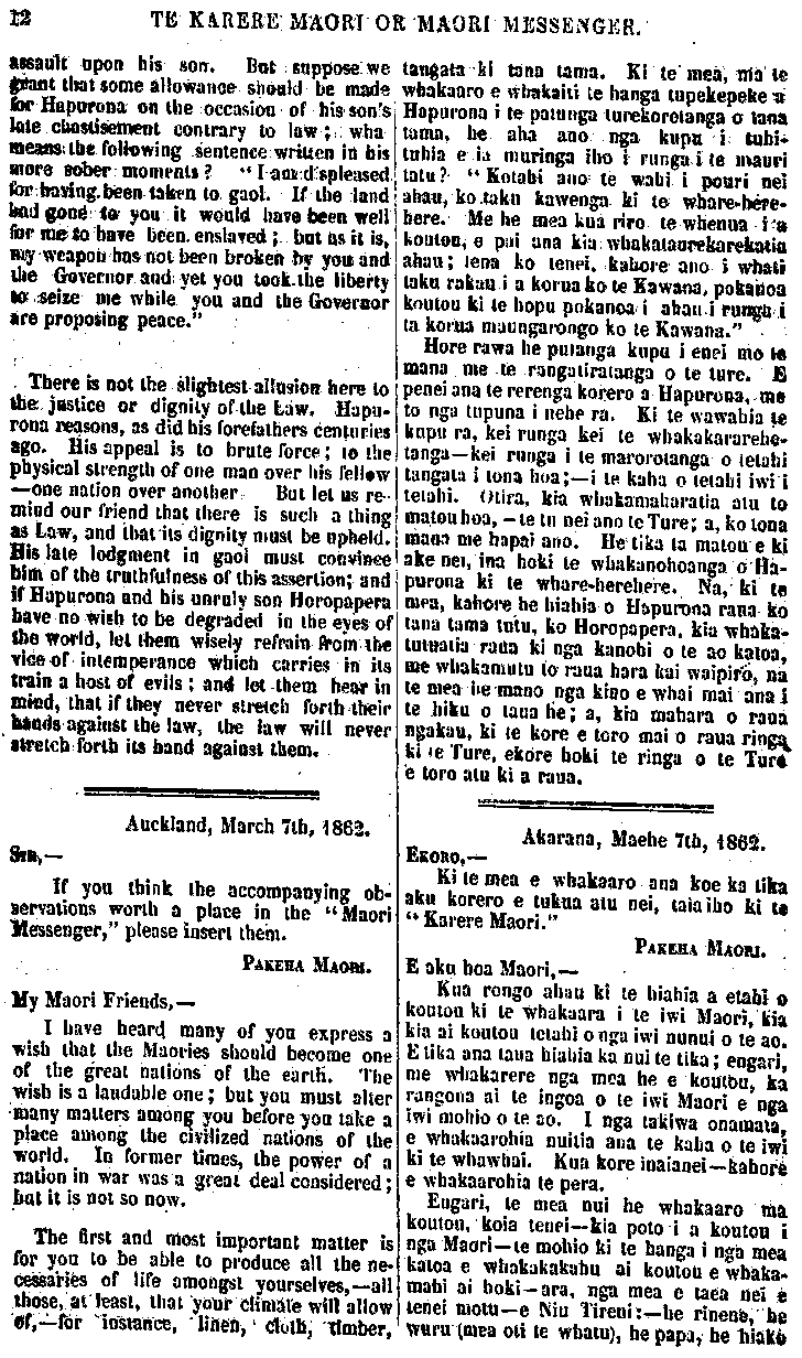 Te Karere Maori 1861-1863: Volume 2, Number 7. 13 March 1862 |